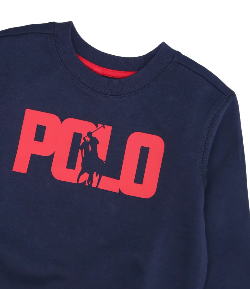 Felpa Ralph Lauren Childrenswear in cotone blu navy presenta un logo sportivo “Polo Ralph Lauren” e l’esclusivo pony.