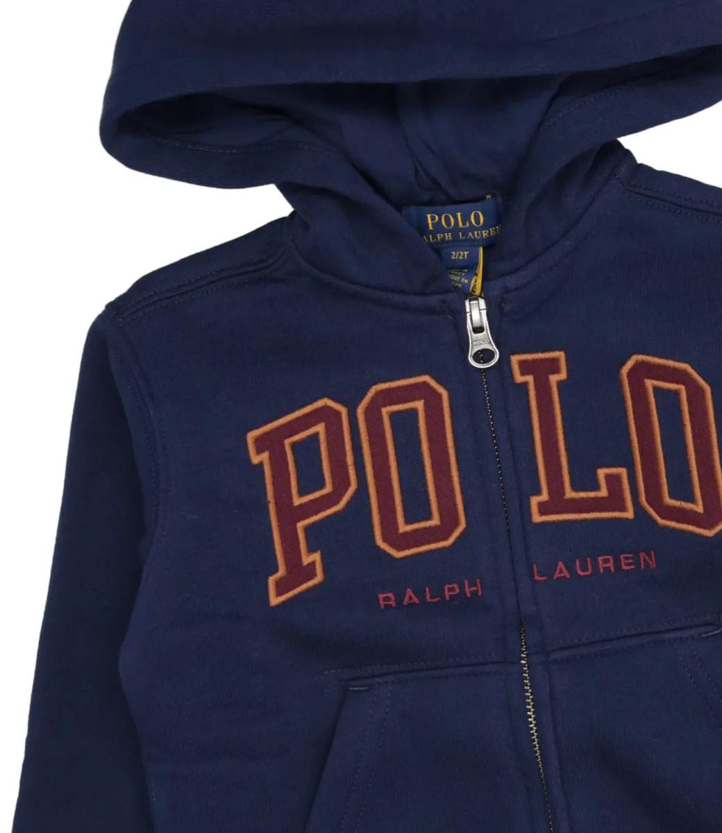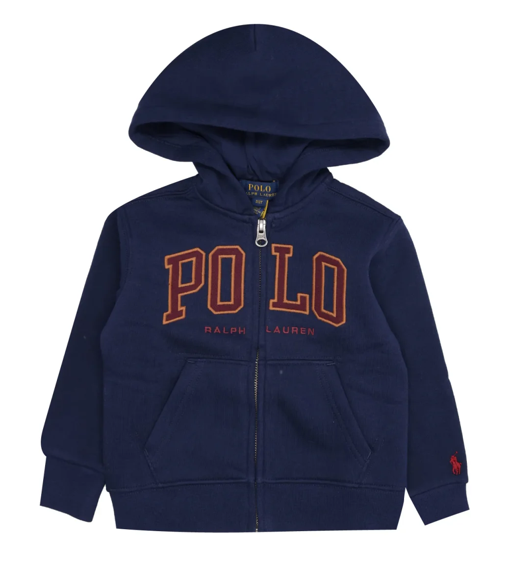 Felpa Ralph Lauren Childrenswear in cotone blu navy con cappuccio presenta un logo sportivo “Polo Ralph Lauren” e l’esclusivo pony.
