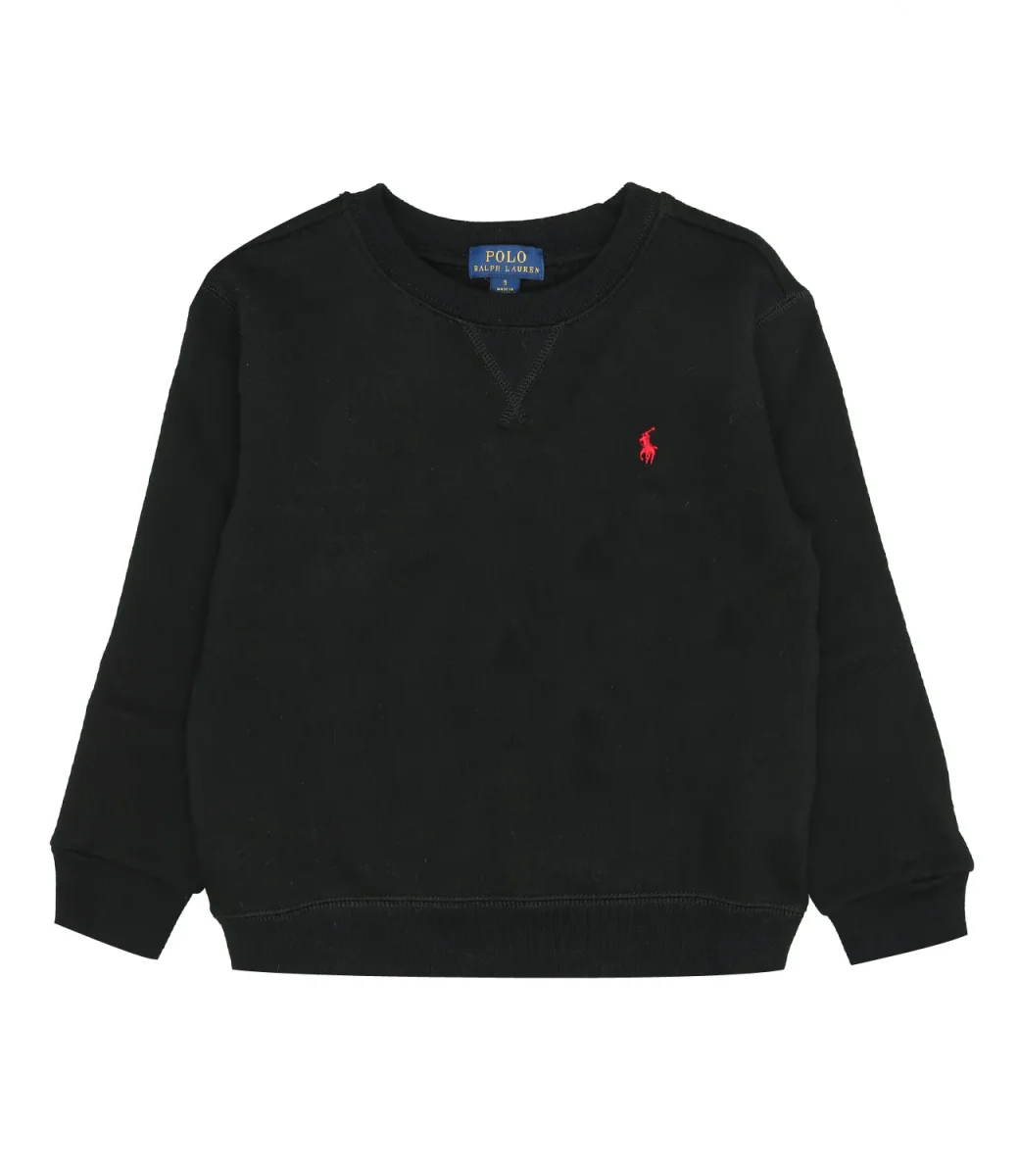 Felpa Ralph Lauren Childrenswear realizzata in cotone, girocollo con inserto a V a coste, con esclusivo pony ricamato sul lato sinistro del torace, maniche lunghe con polsini a coste, fondo con bordo a coste.