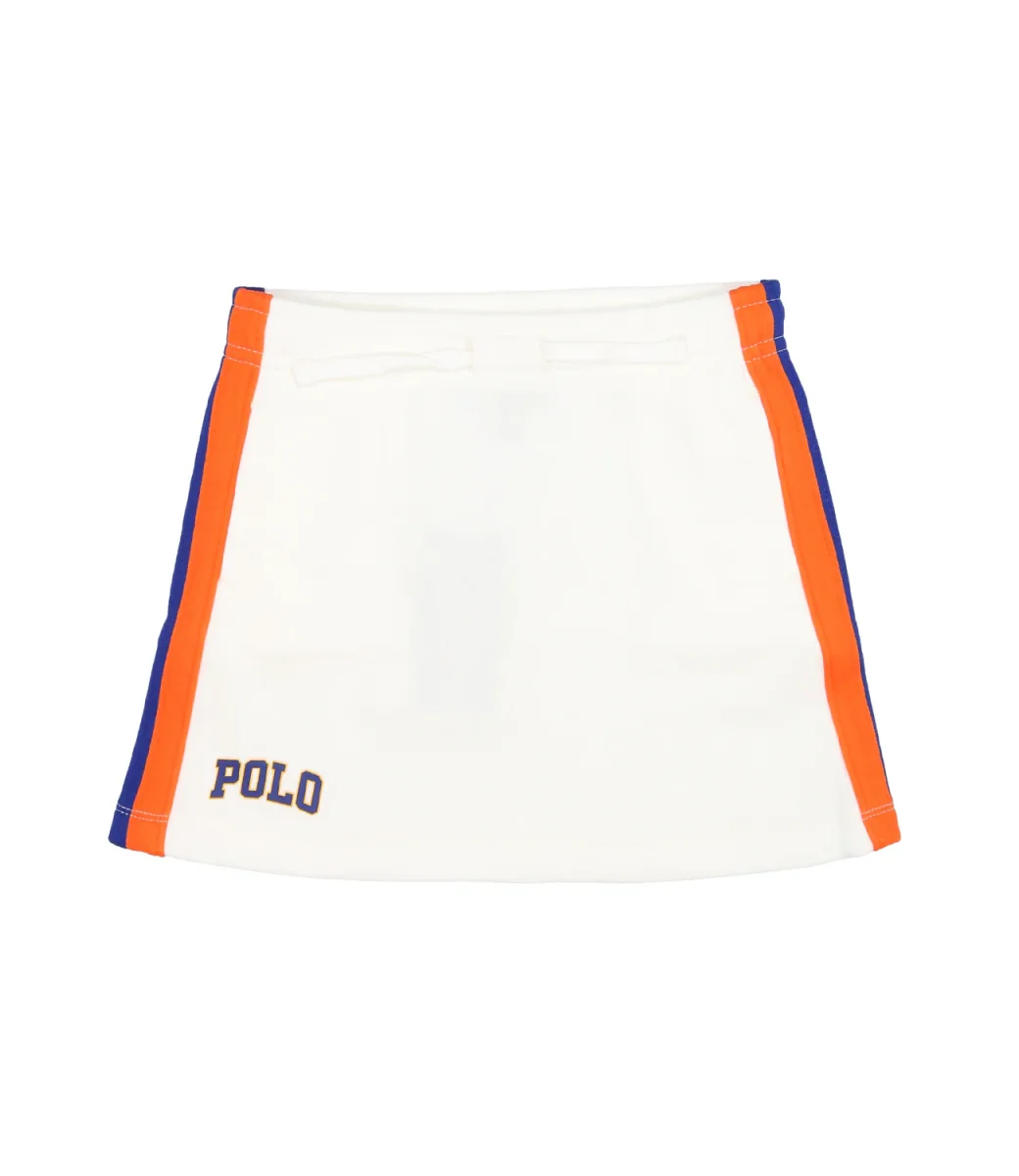 Realizzata in morbidissimo misto cotone, questa gonna dal vivace look sportivo presenta righe applicate sui lati e un logo “Polo” sull’orlo.
