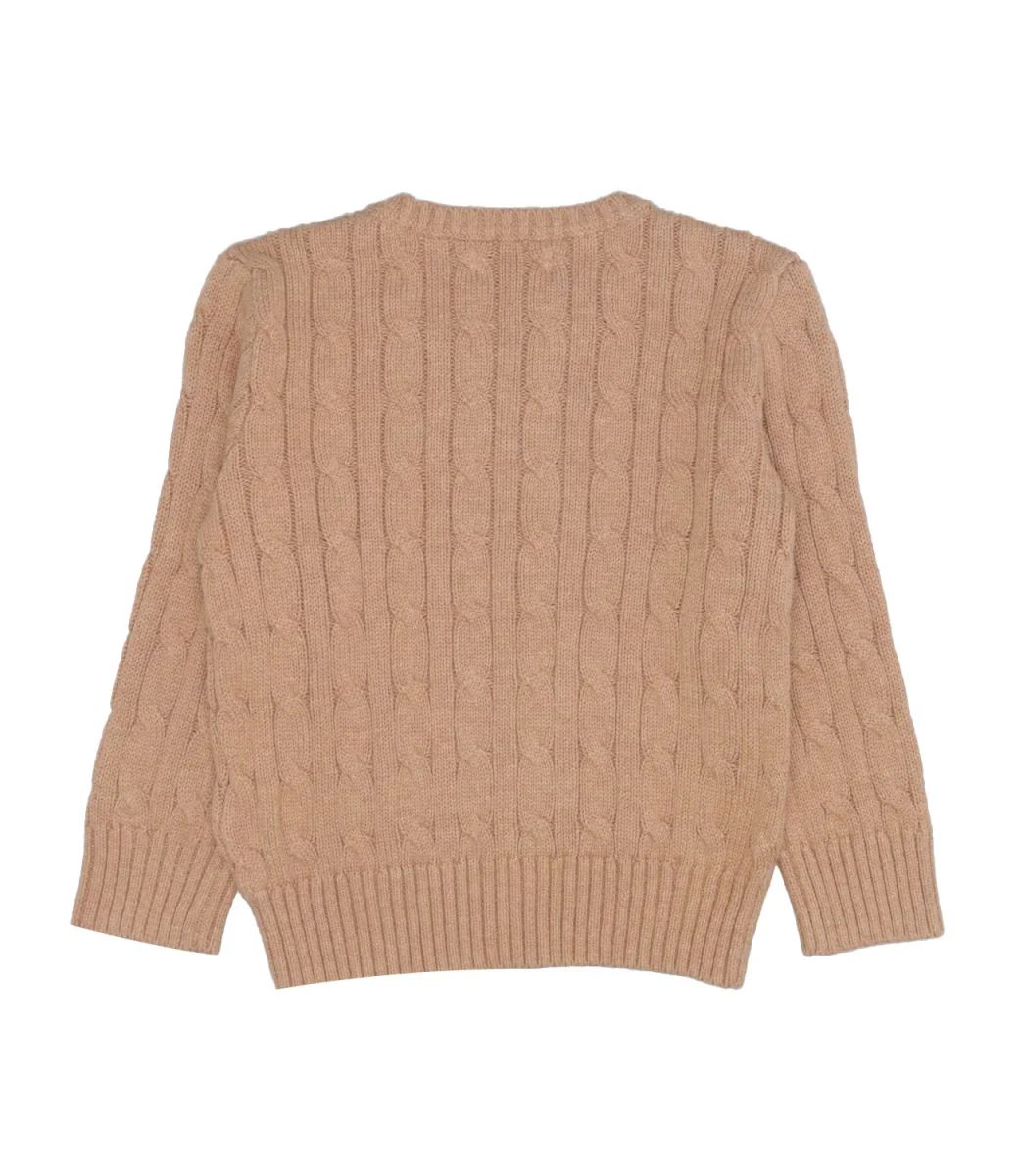 Maglia Ralph Lauren Childrenswear realizzata in cotone, girocollo, motivo a trecce iconico del brand con esclusivo pony ricamato sul lato sinistro del torace. Carattere distintivo per Ralph Lauren.