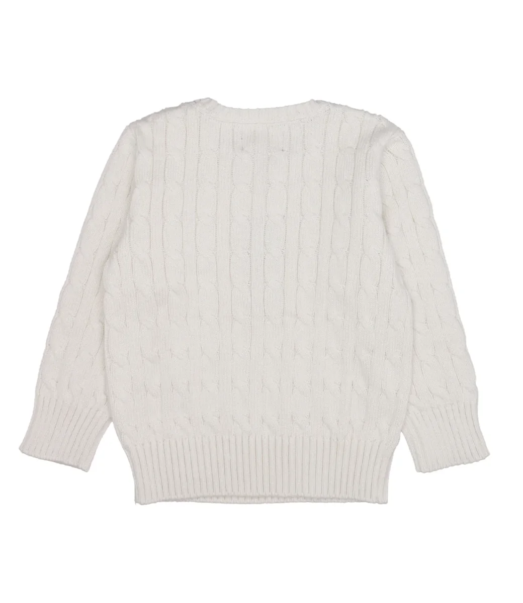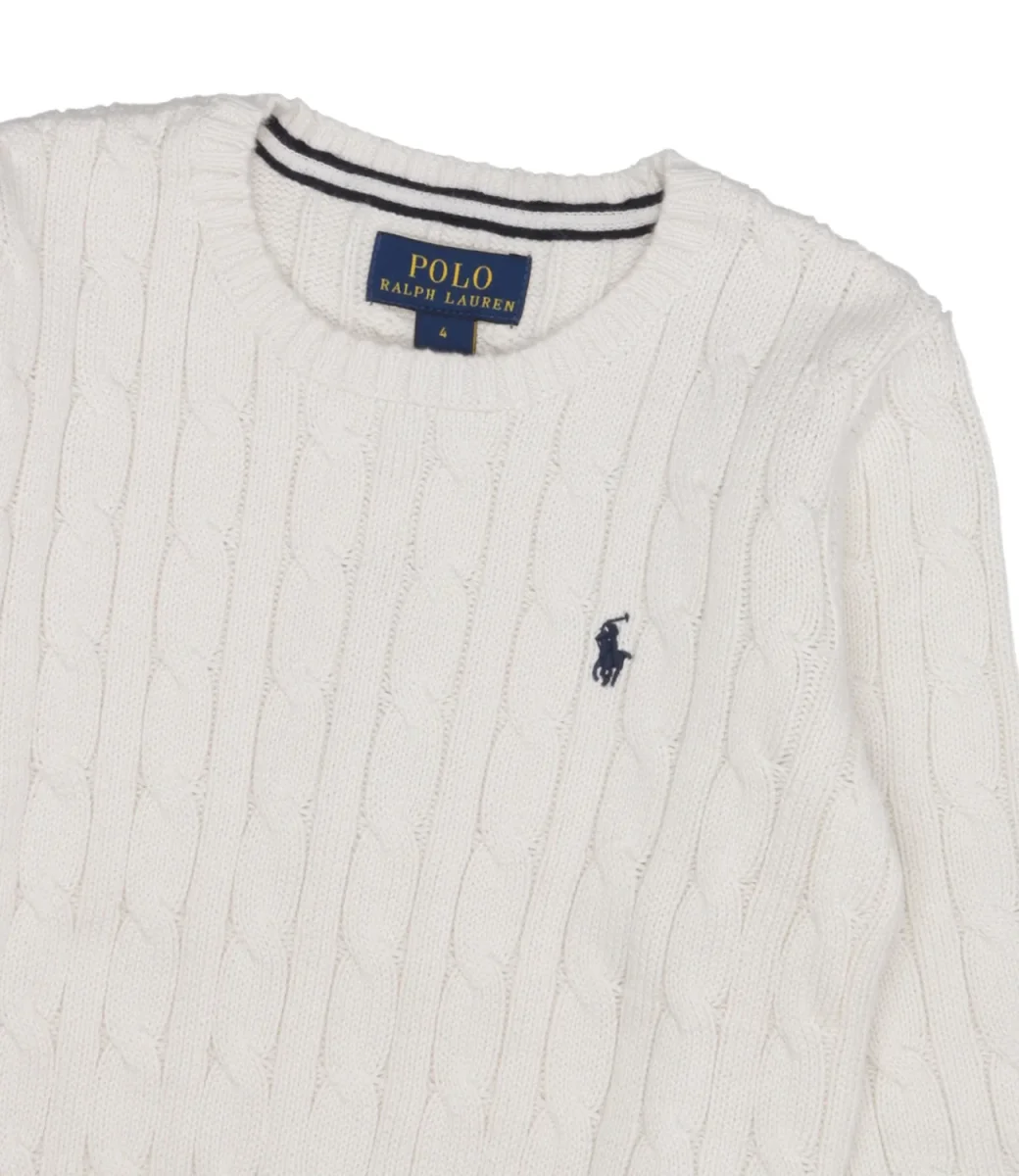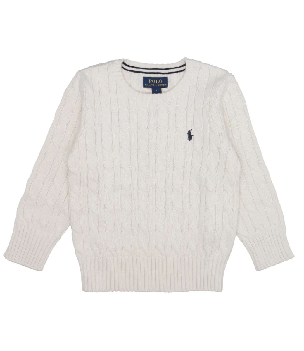 Maglia Ralph Lauren Childrenswear realizzata in cotone pettinato, girocollo, iconica lavorazione a trecce, maniche lunghe con polsini a coste, bordo a costine, esclusivo pony ricamato sul lato sinistro del torace.
