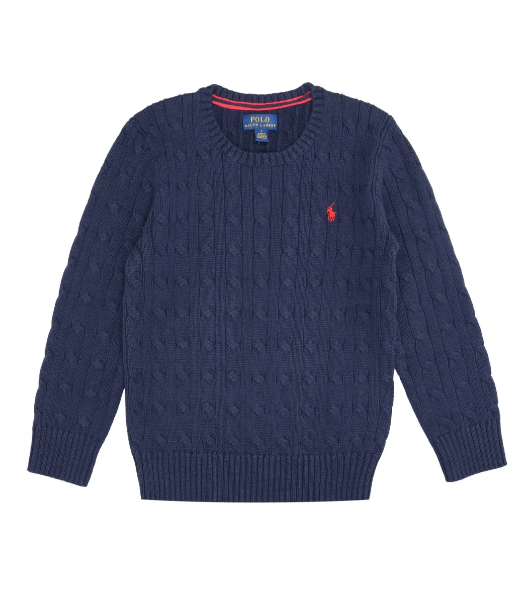Maglia Ralph Lauren Childrenswear realizzata in cotone pettinato, girocollo, iconica lavorazione a trecce, maniche lunghe con polsini a coste, bordo a costine, esclusivo pony ricamato sul lato sinistro del torace.