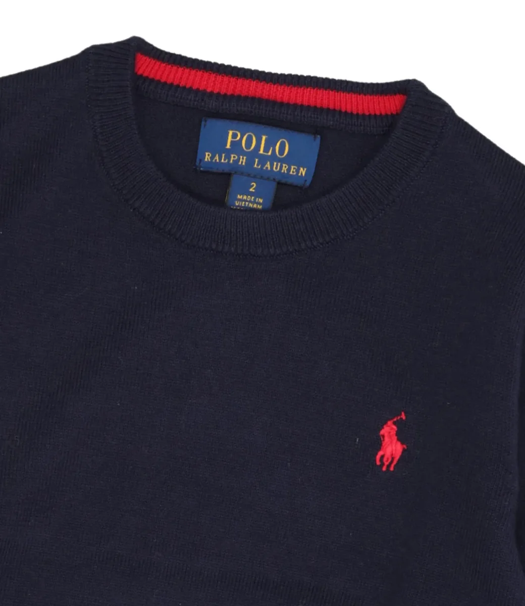 Maglia Ralph Lauren Childrenswear in cotone a girocollo con logo cucito sul lato sinistro del torace.