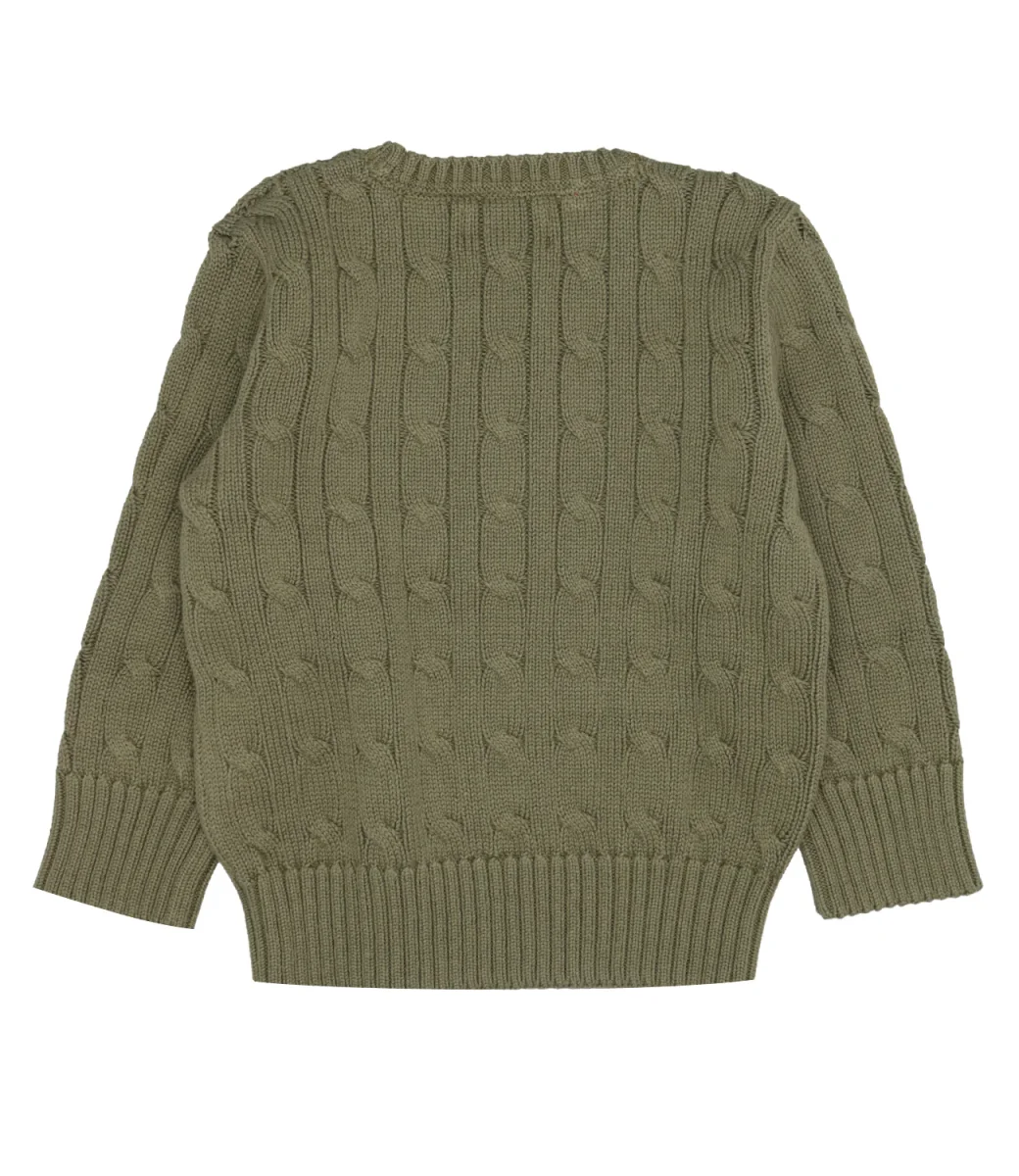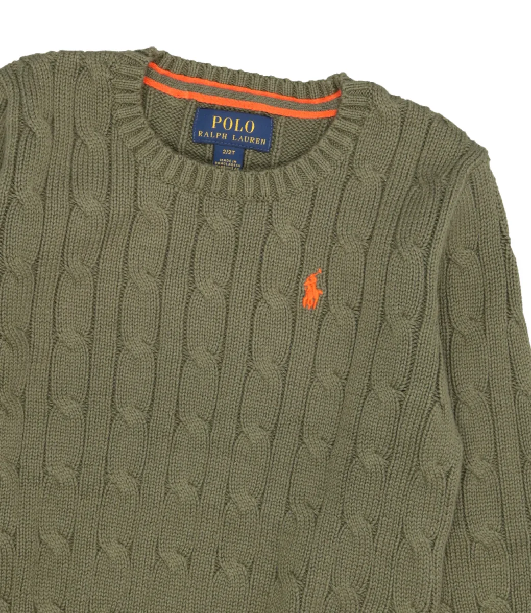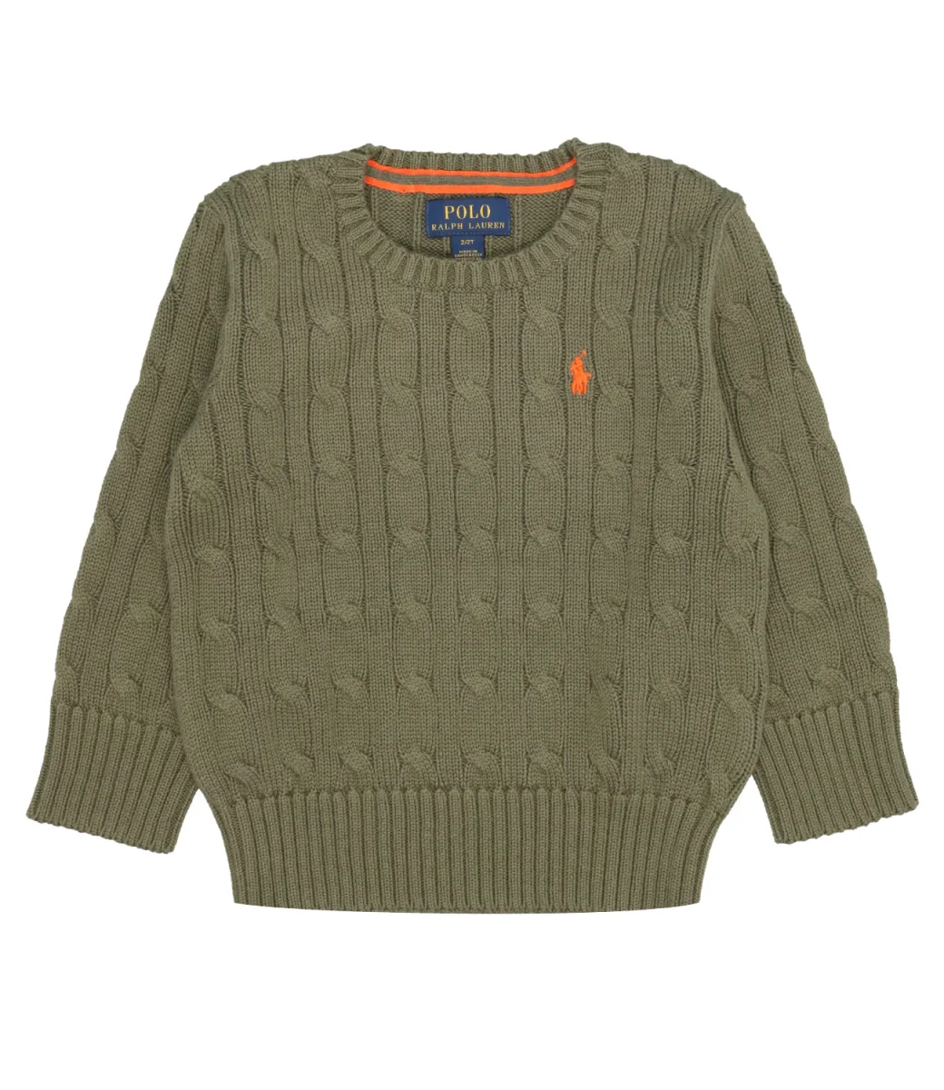 Maglia Ralph Lauren Childrenswear in cotone, modello classico con motivo a trecce, girocollo, esclusivo pony ricamato sul lato sinistro del torace, maniche lunghe con polsini lavorati a coste, fondo con bordo a coste.