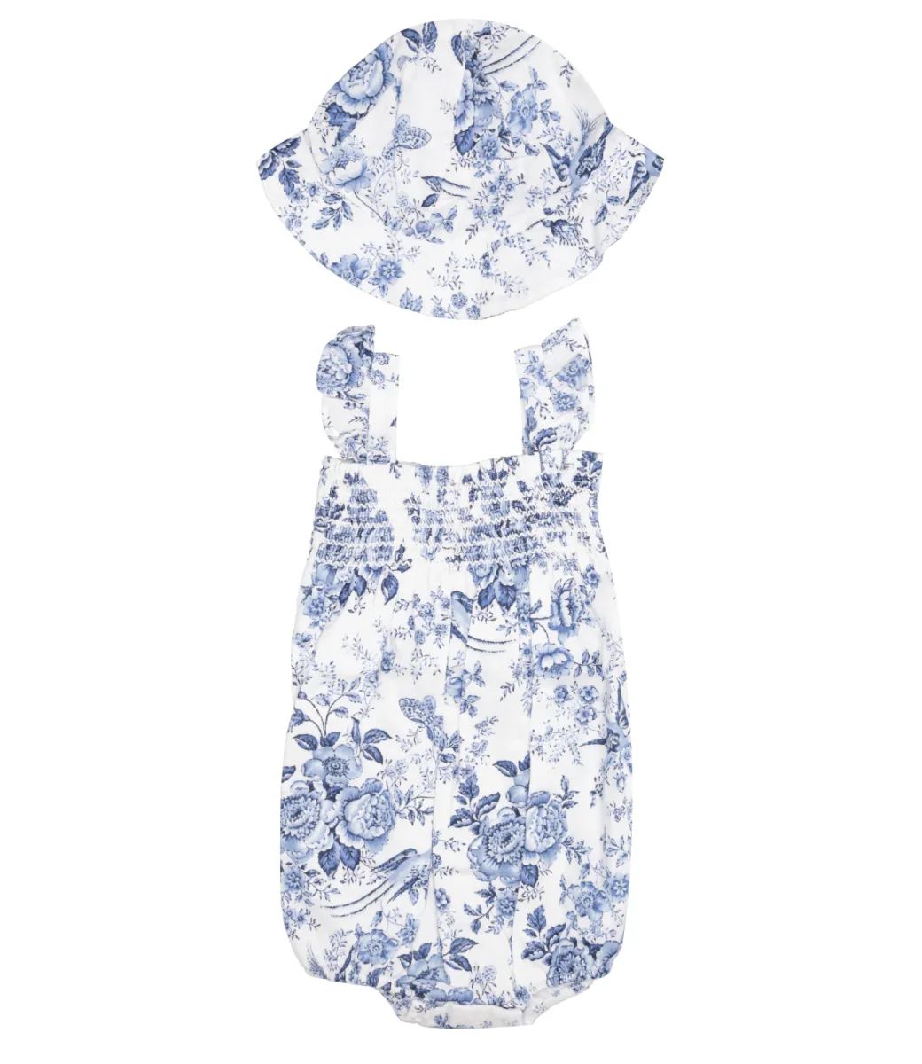 Questo set Ralph Lauren Childrenswear include un pagliaccetto in batista di cotone dalla delicata lavorazione a punto smock sul carré e un cappellino a fiori coordinato.