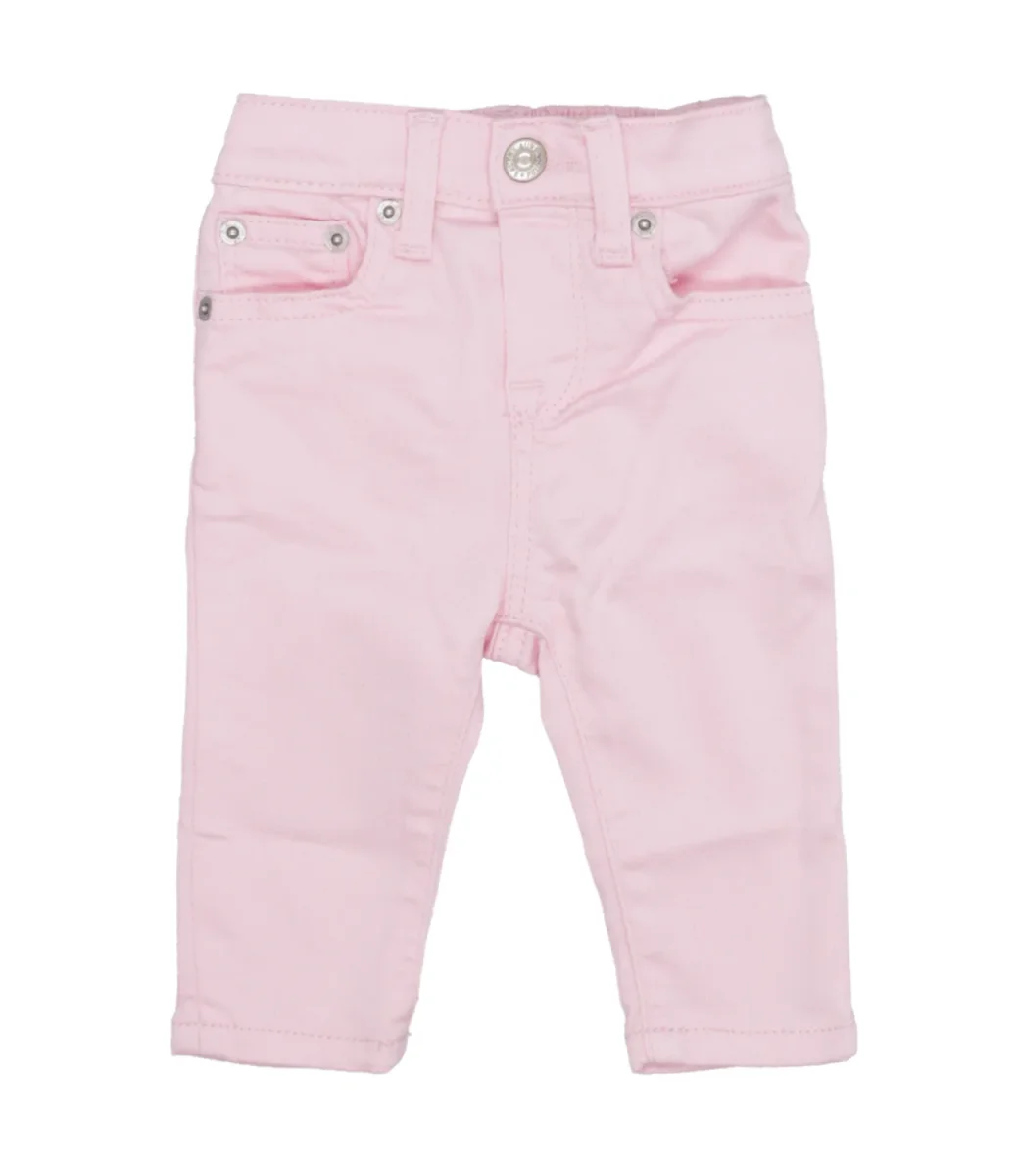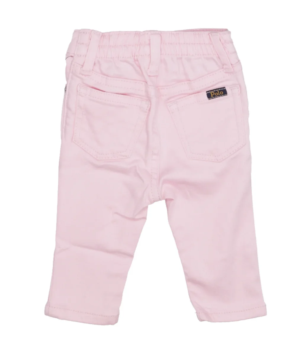 Pantalone Ralph Lauren Childrenswear in denim modello cinque tasche con bottone in vita.