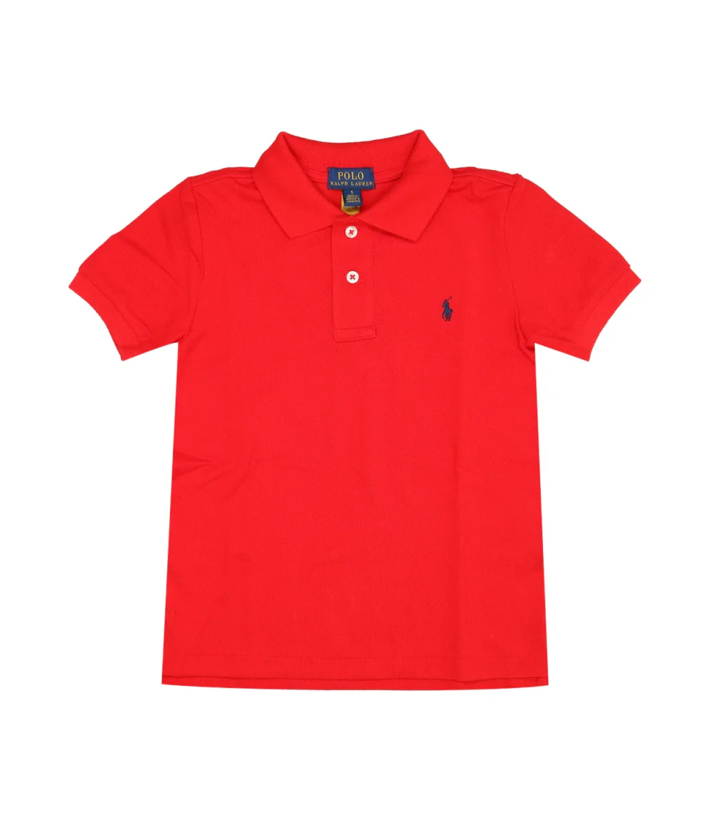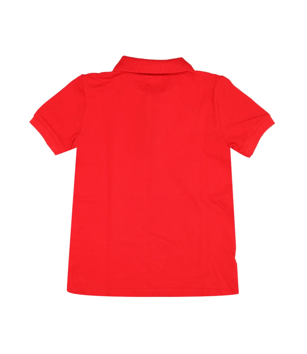 Polo Ralph Lauren Childrenswear in piquè rosso, manica corta, collo e bordo manica a costine, chiusura frontale con bottoncini, orlo dritto con spacchi laterali, presenta il nostro caratteristico Pony ricamato sul lato sinistro del torace,