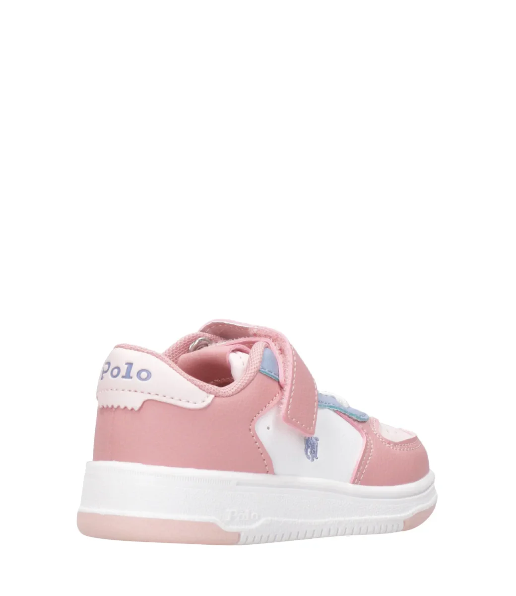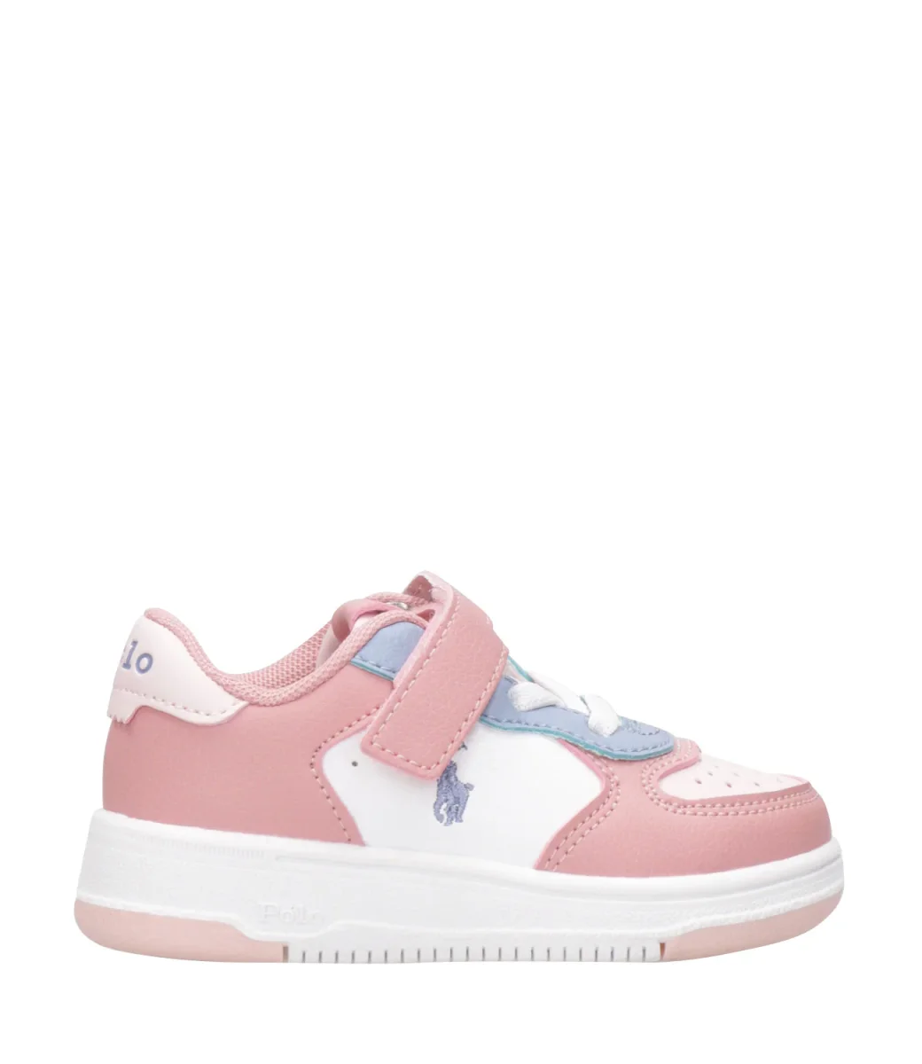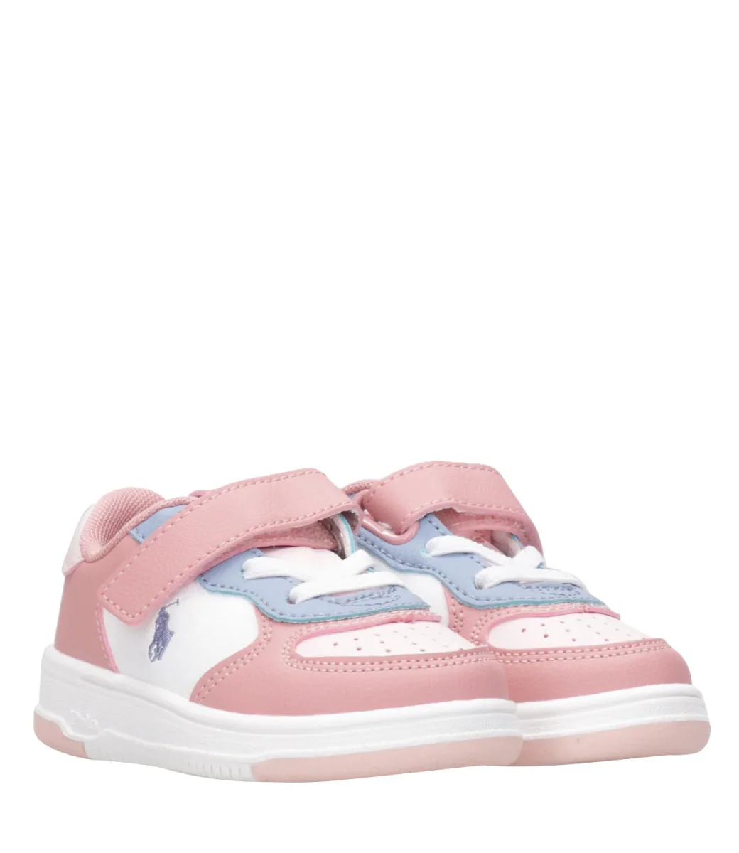 Sneakers Ralph Lauren Childrenswear Masters Court PS in pelle con stringhe e chiusura con velcro, logo laterale e suola in gomma.