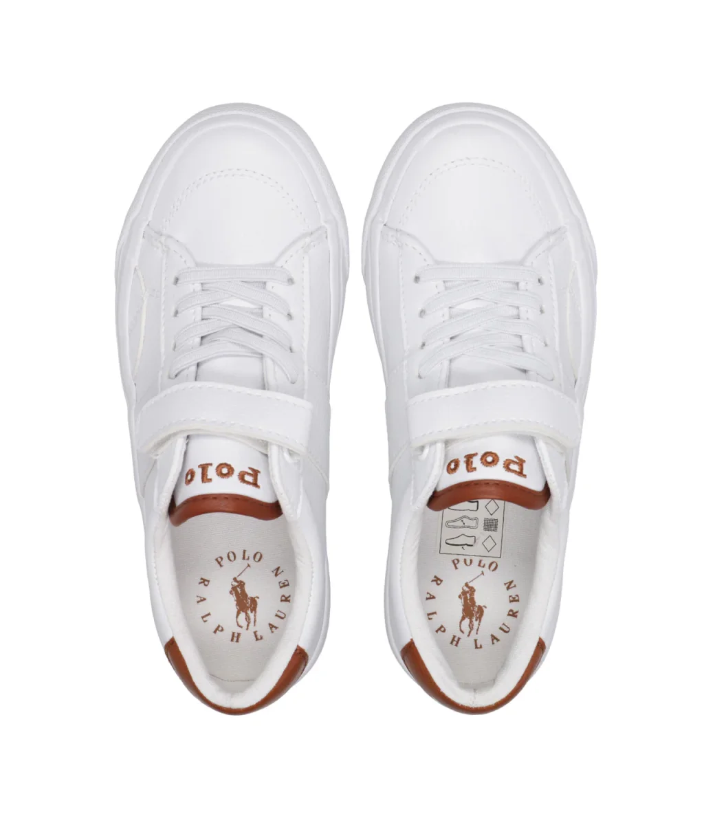 Sneakers Ralph Lauren Childrenswear in pelle con stringhe e chiusura con velcro, logo laterale e suola in gomma.
