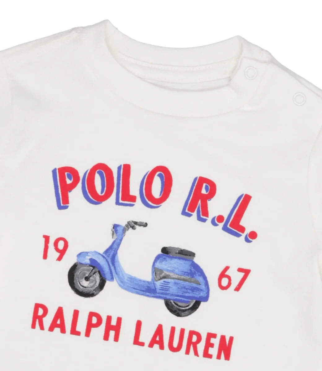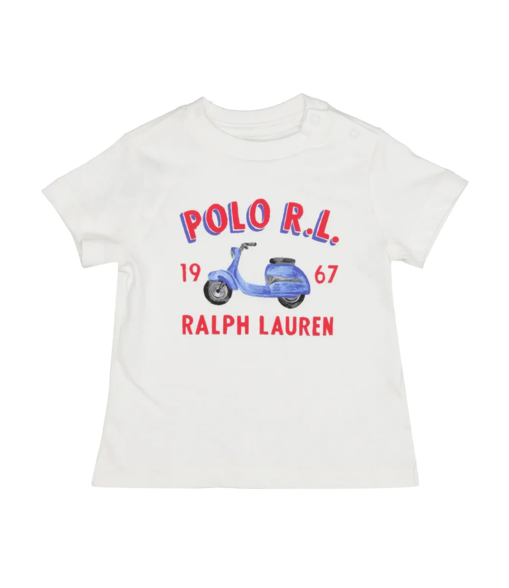 T-Shirt Ralph Lauren Childrenswear in jersey di cotone. Classica nel suo design, unica nella maxi stampa sul davanti per vestire di colore i più piccoli.