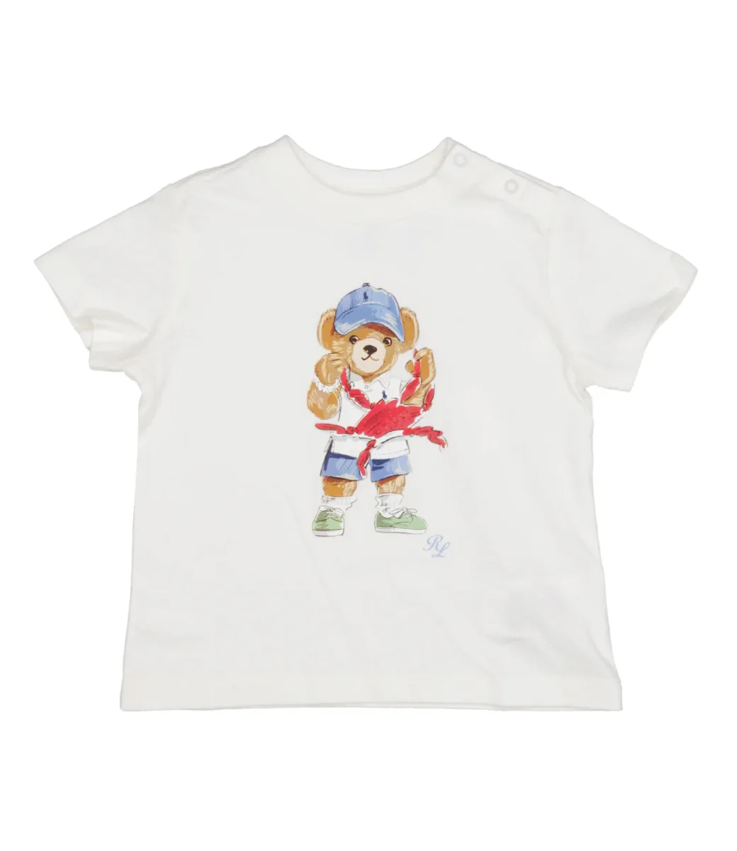 T-Shirt Ralph Lauren Childrenswear in jersey di cotone. Classica nel suo design, unica nella maxi stampa Teddy Bear sul davanti per vestire di colore i più piccoli.