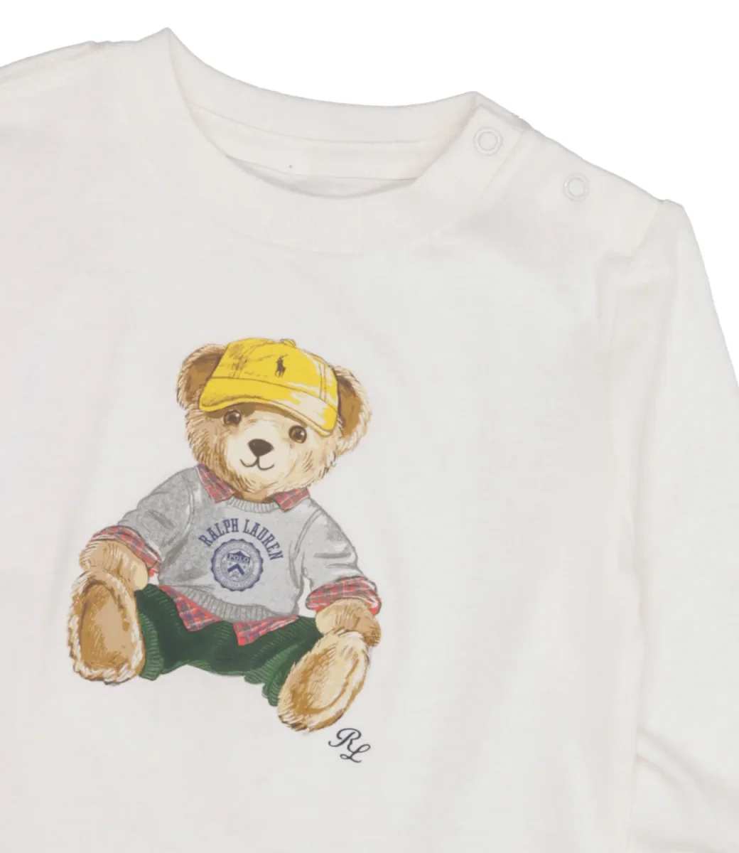 T-Shirt Ralph Lauren Childrenswear in jersey di cotone. Classica nel suo design, unica nella maxi stampa Teddy Bear sul davanti per vestire di colore i più piccoli.