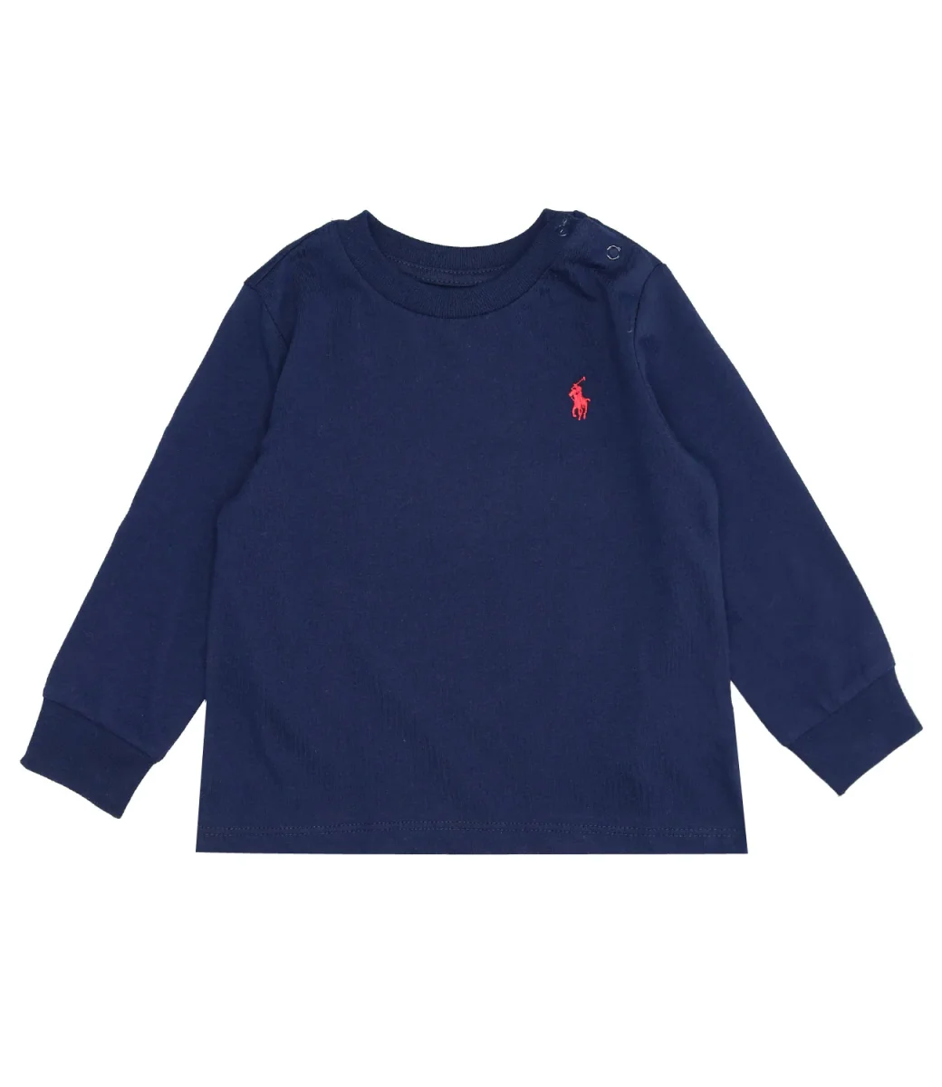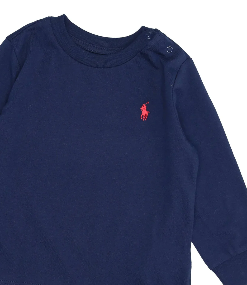T-Shirt Ralph Lauren Childrenswear in jersey di cotone, esclusivo pony ricamato sul petto lato sinistro, girocollo, maniche lunghe con polsino a costine, fondo con orlo dritto, chiusura con bottoncini automatici sulla spalla sinistra.