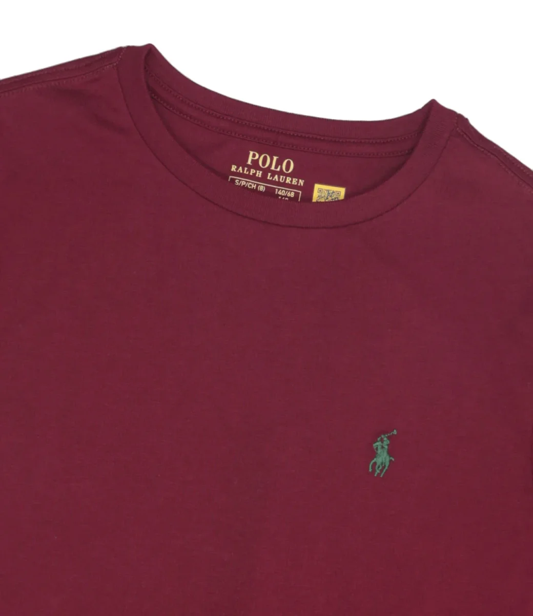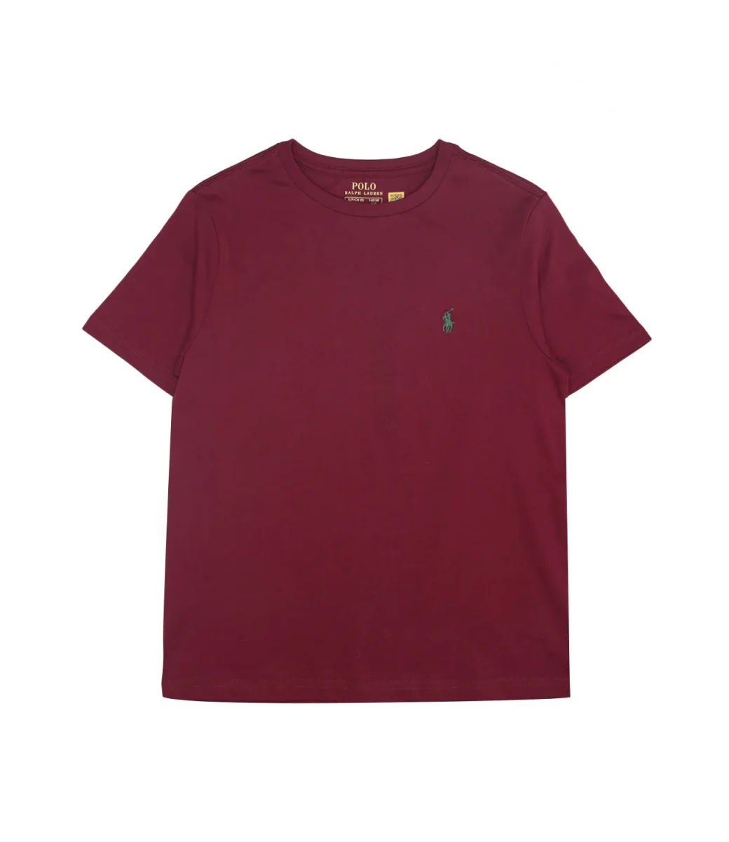 T-Shirt Ralph Lauren Childrenswear in morbido jersey di cotone bordeaux che sfoggia l’ iconico pony ricamato, emblema dello stile Polo.