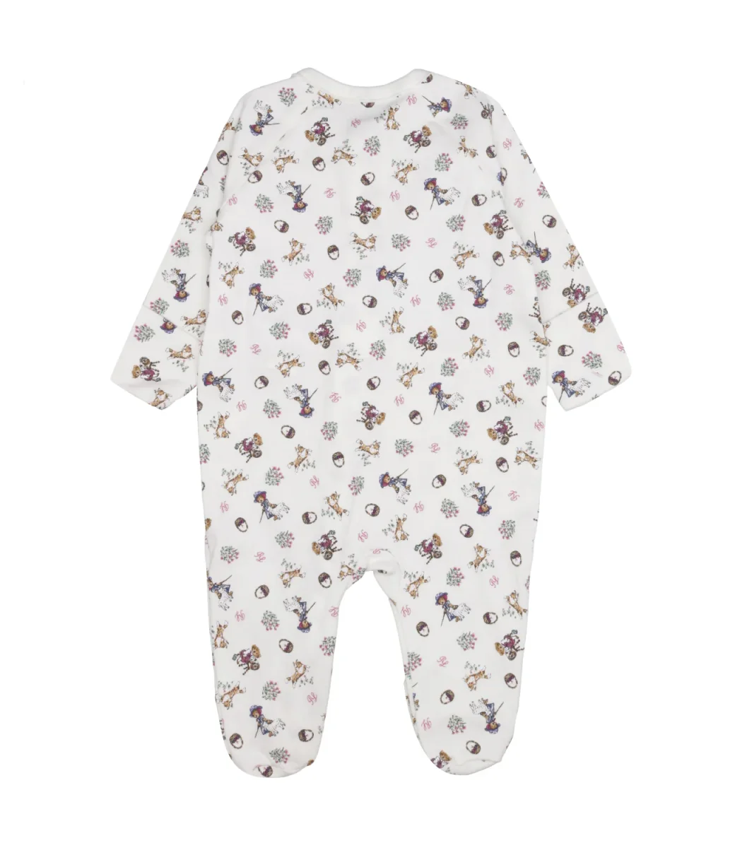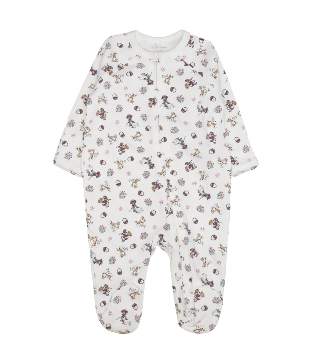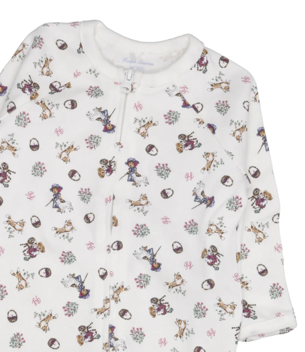 Tutina Piede Ralph Lauren Childrenswear in cotone con stampa Polo Lady Bear e fiori all over.