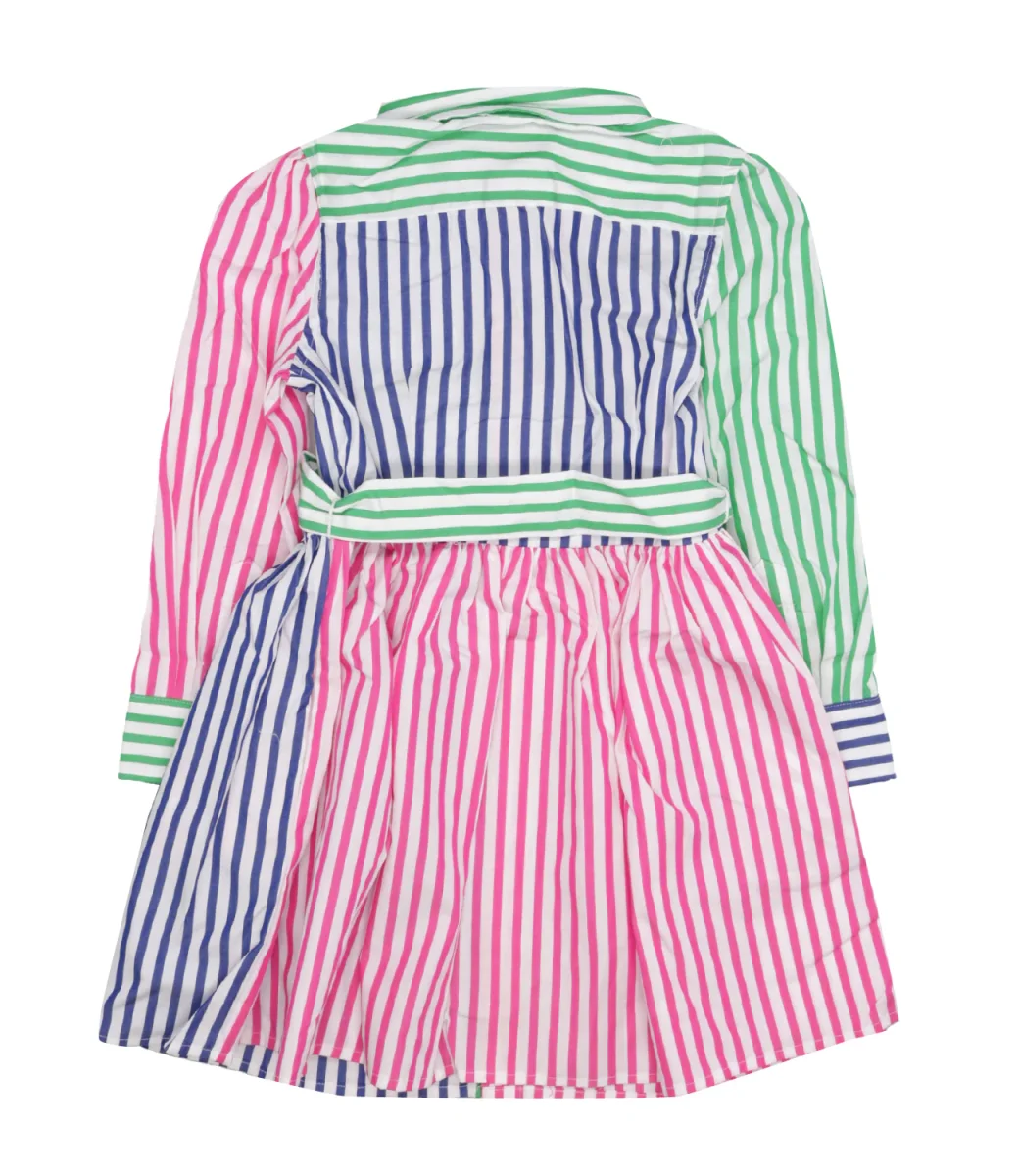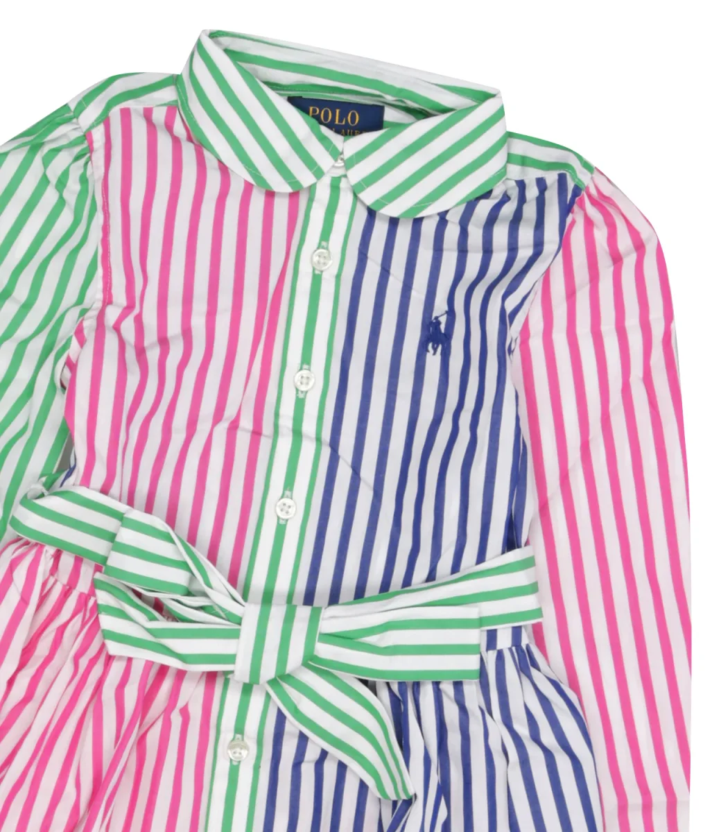 Vestito Ralph Lauren Childrenswear in cotone con maniche lunghe, colletto, chiusura con bottoni e cintura in vita, logo ricamato sulla parte sinistra del petto.