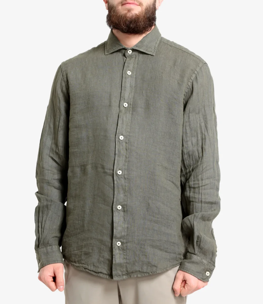 Camicia Roy Roger’s Riviera in lino pierce tinta unita. Colletto classico. Chiusura con bottoni. Maniche lunghe. Regular fit.