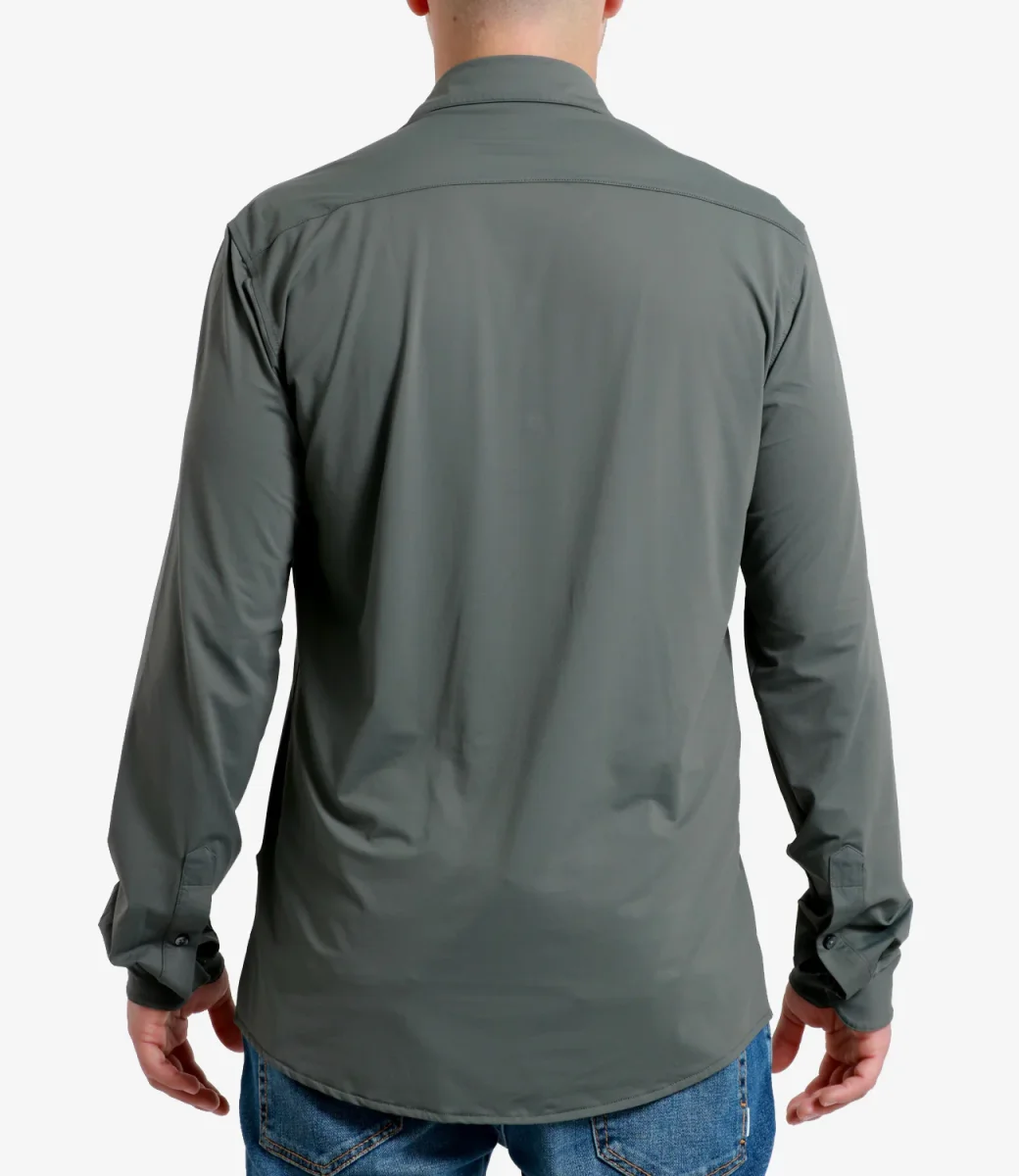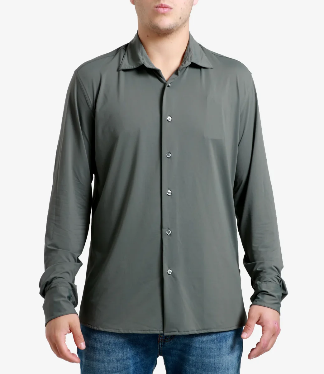Camicia RRD Tecno Wash, modello slim fit a maniche lunghe dà una nota giovanile di modernità all’eleganza di tutti i giorni. È realizzata in tessuto Oxford a effetto delavé monocromatico ed elasticizzato, no iron, quick drying e wrinkle free a effetto delavé. Grazie all’elegante abbottonatura alla francese e il colletto aperto, può essere abbinata a un look casual friday per l’ufficio, come a un chino o un paio di Bermuda classici nel tempo libero.