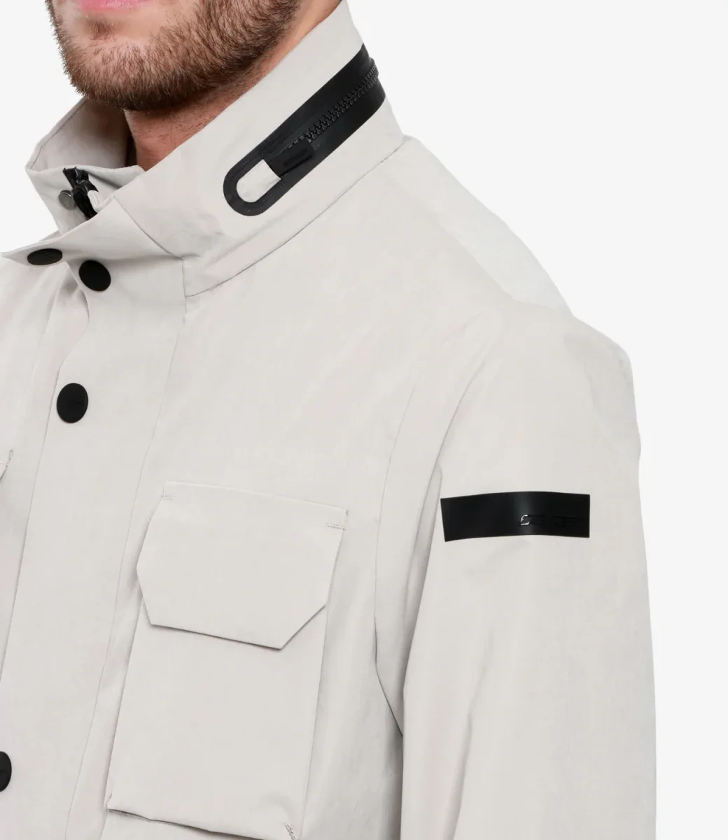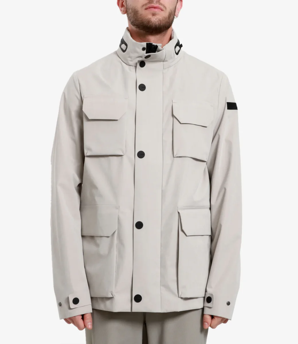 Dettagli:– Tessuto tecnico– Collo alto– Maniche lunghe– Chiusura con bottoni automatici– Tasche
