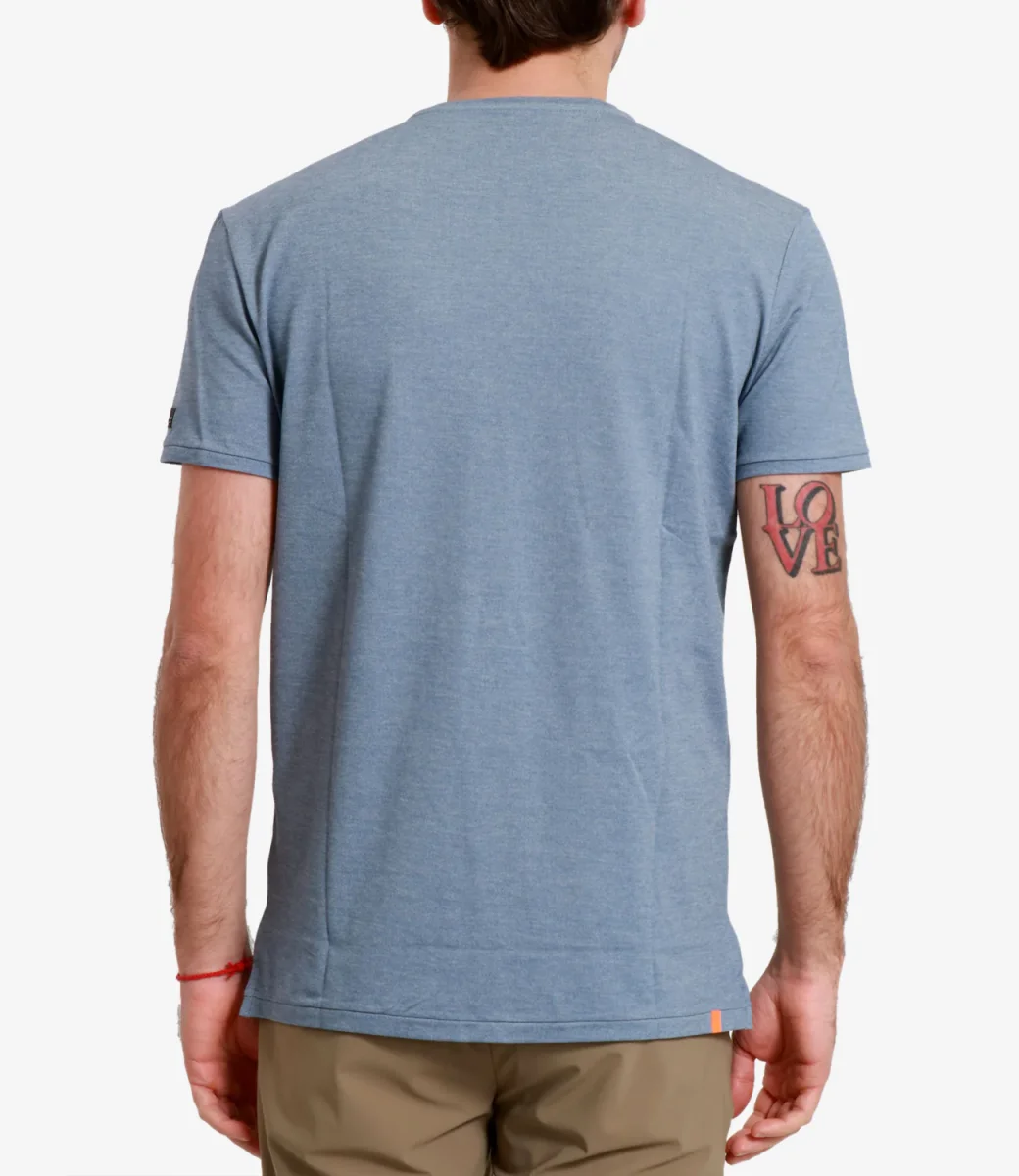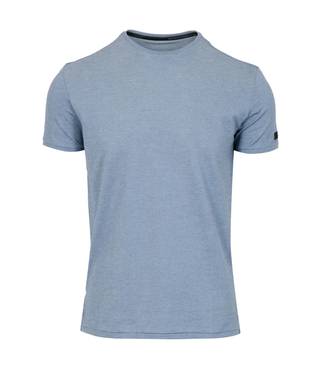 T-Shirt RRD Doticon in misto cotone con lavorazione in micro piqué bicolore elasticizzato con finitura cangiante: traspirante e morbida, easy care e a rapida asciugatura. Silhouette dritta con collo a giro e spalle regolari, micro spacchi laterali, nastro arancione fluo e logo a microiniezione per uno stile estivo.