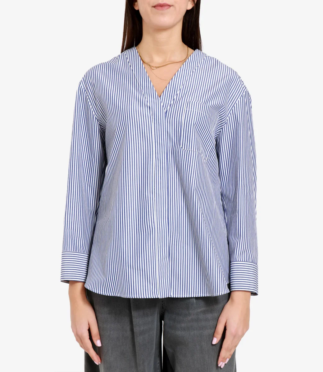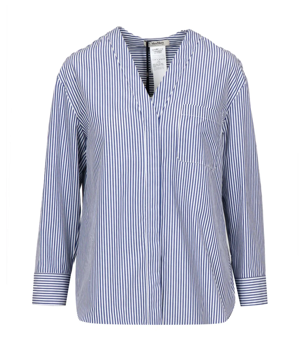 Camicia S Max Mara Smmchicca in puro cotone a righe con moivo a righe, con scollo a V e maniche lunghe, fondo stondato sul retro. Capo d’ispirazione classica per abbinamenti casdual per ogni momento della giornata.