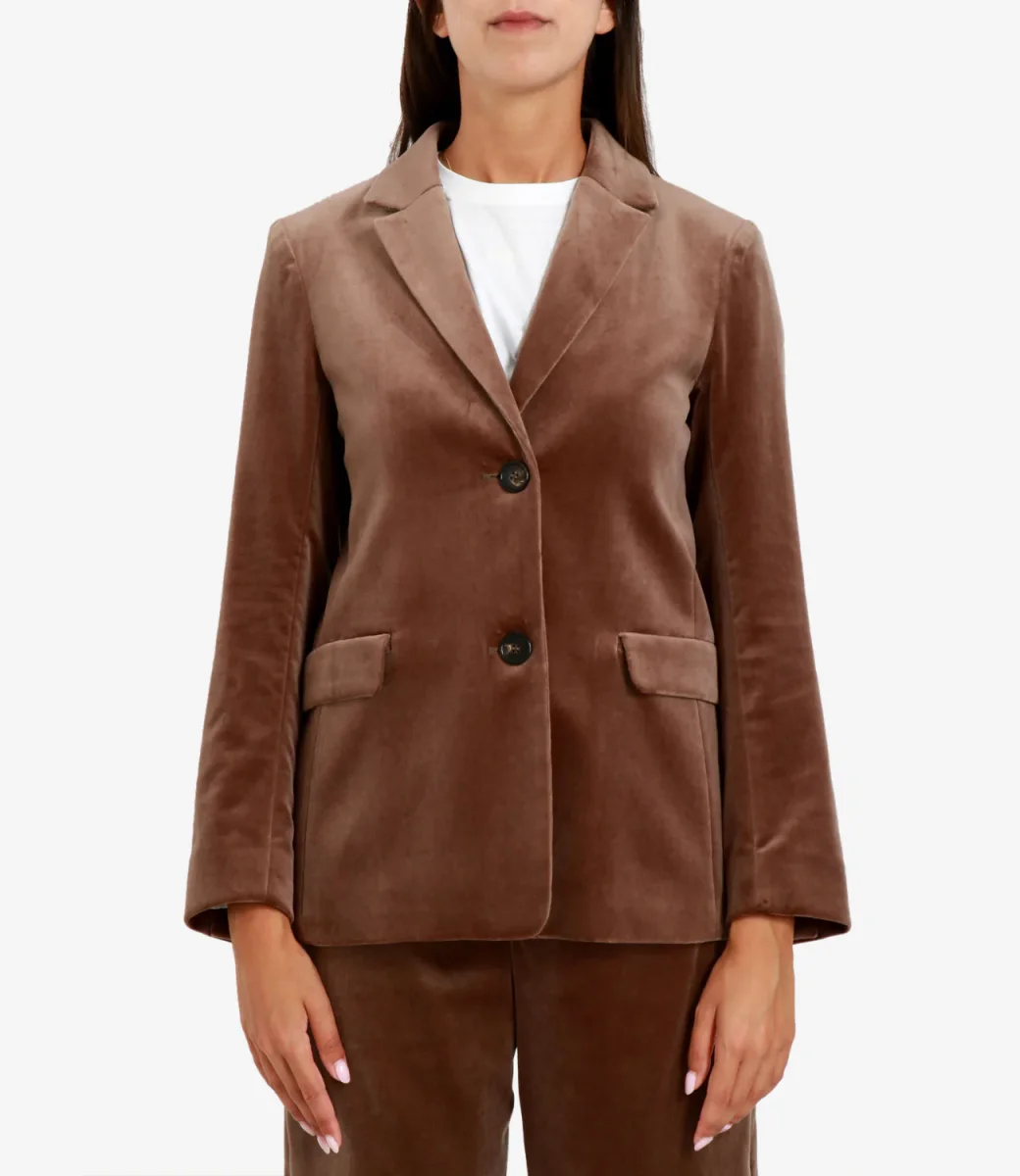 Giacca S Max Mara Agata in velluto, classico monopetto con collo a rever e chiusura con bottoni a vista. Ideale per un outfit casual da giorno ed elegante per occasioni importanti.