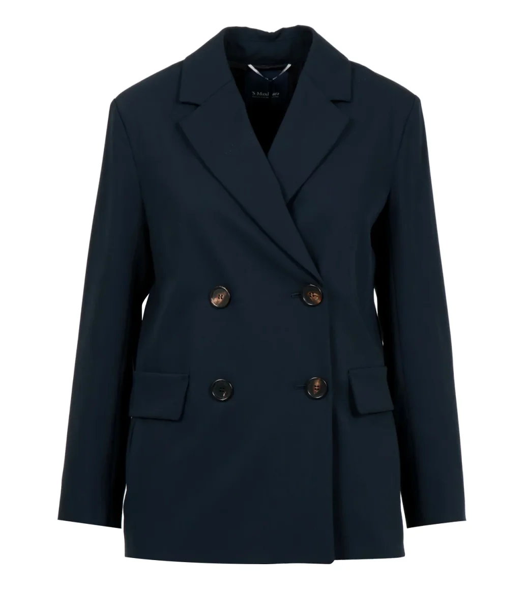 Giacca S Max Mara Ester in levantina di pura lana crêpe, classico doppiopetto con collo a revere chiusura con bottoni a vista. Ideale per una giornata in ufficio abbinato con un jeans o per eventi più autorevoli con abbinato il pantalone in tessuto di collezione del brand.