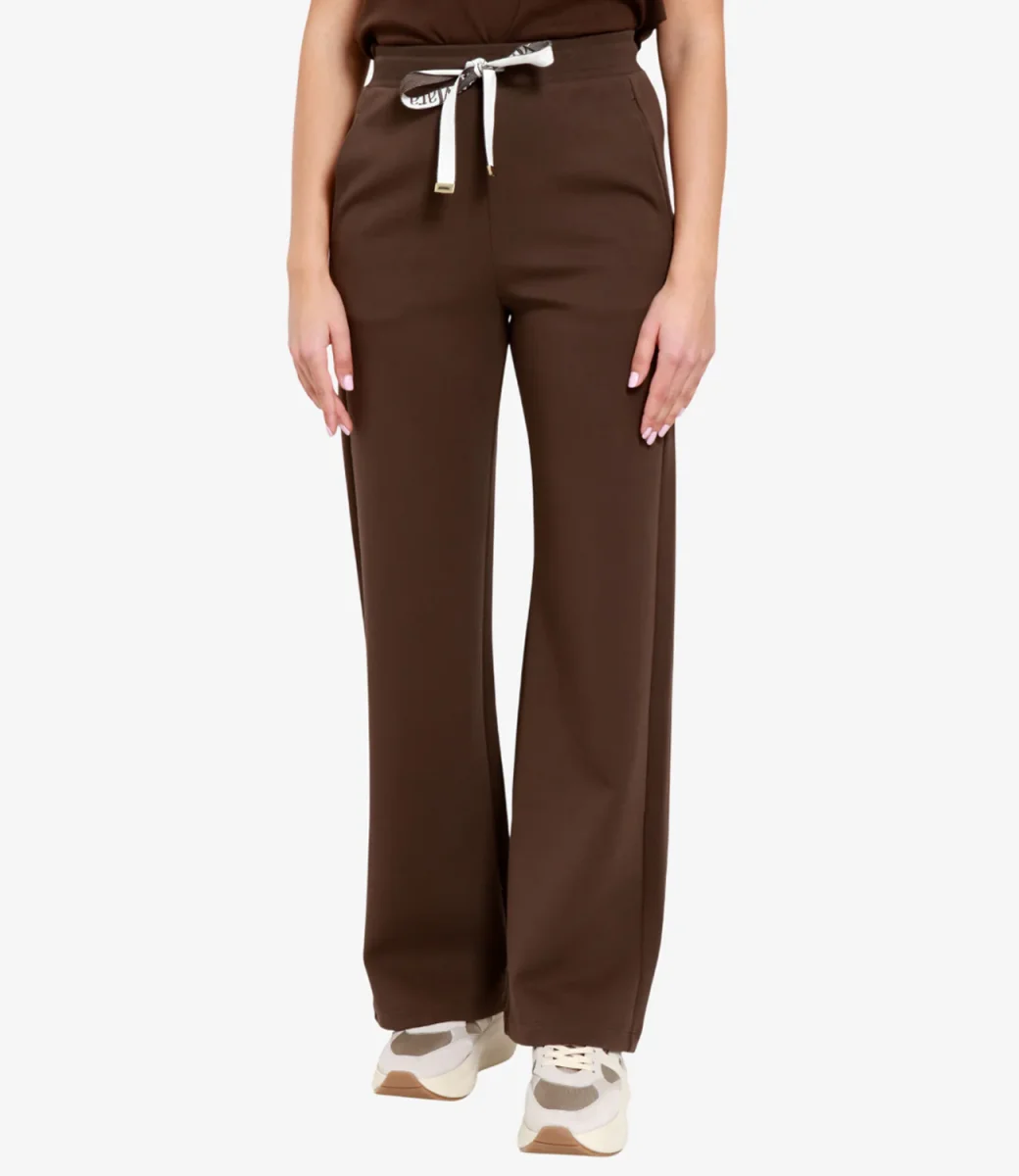 Pantalone Sportivo S Max Mara Smmbali in misto cotone dalla mano tecnica. Silhouette morbida con vita elasticizzata e coulisse in nastro logato jacquard, tasche inserite nei fianchi e taschino a filetto sul retro. Gamba svasata al fondo.