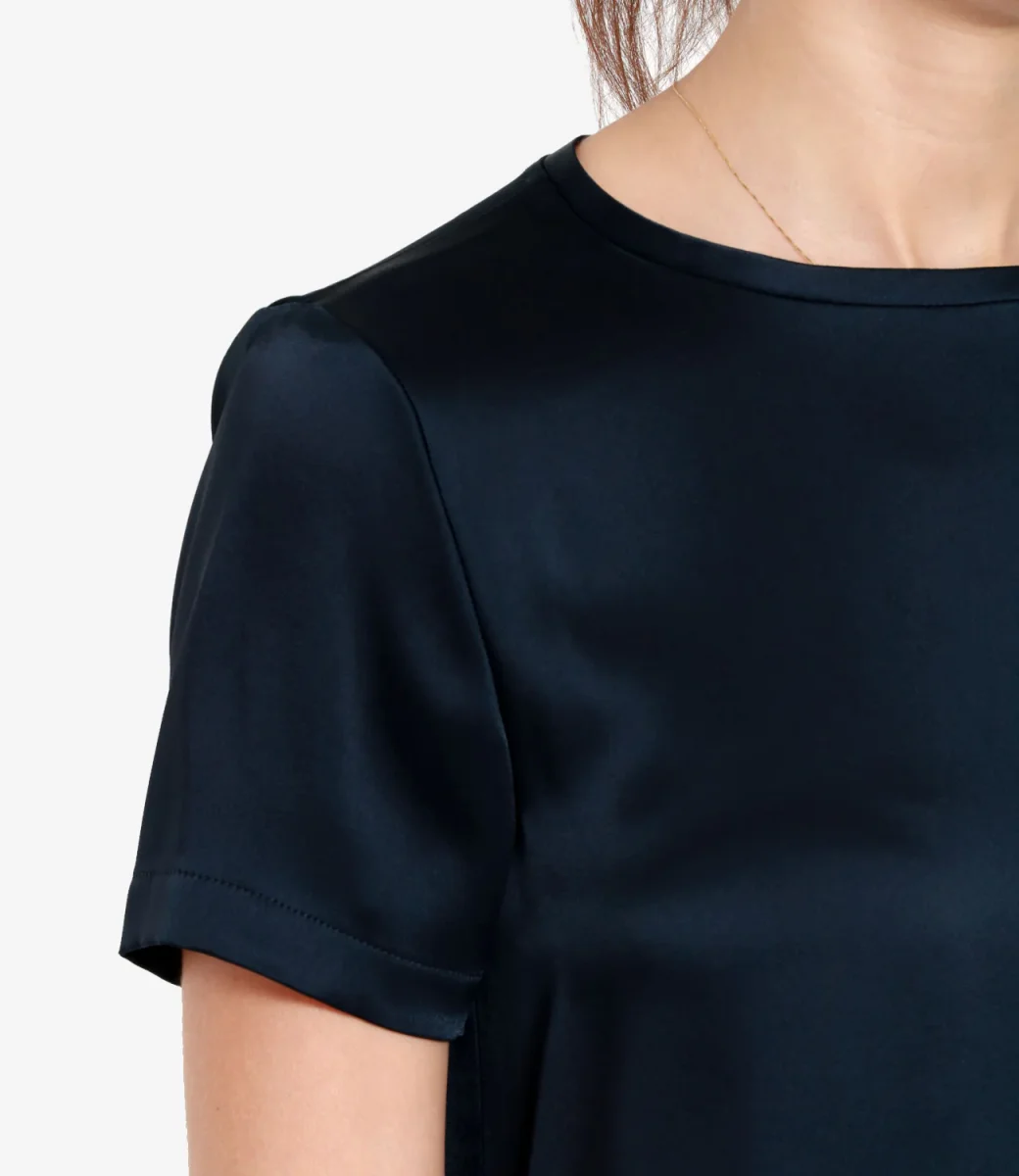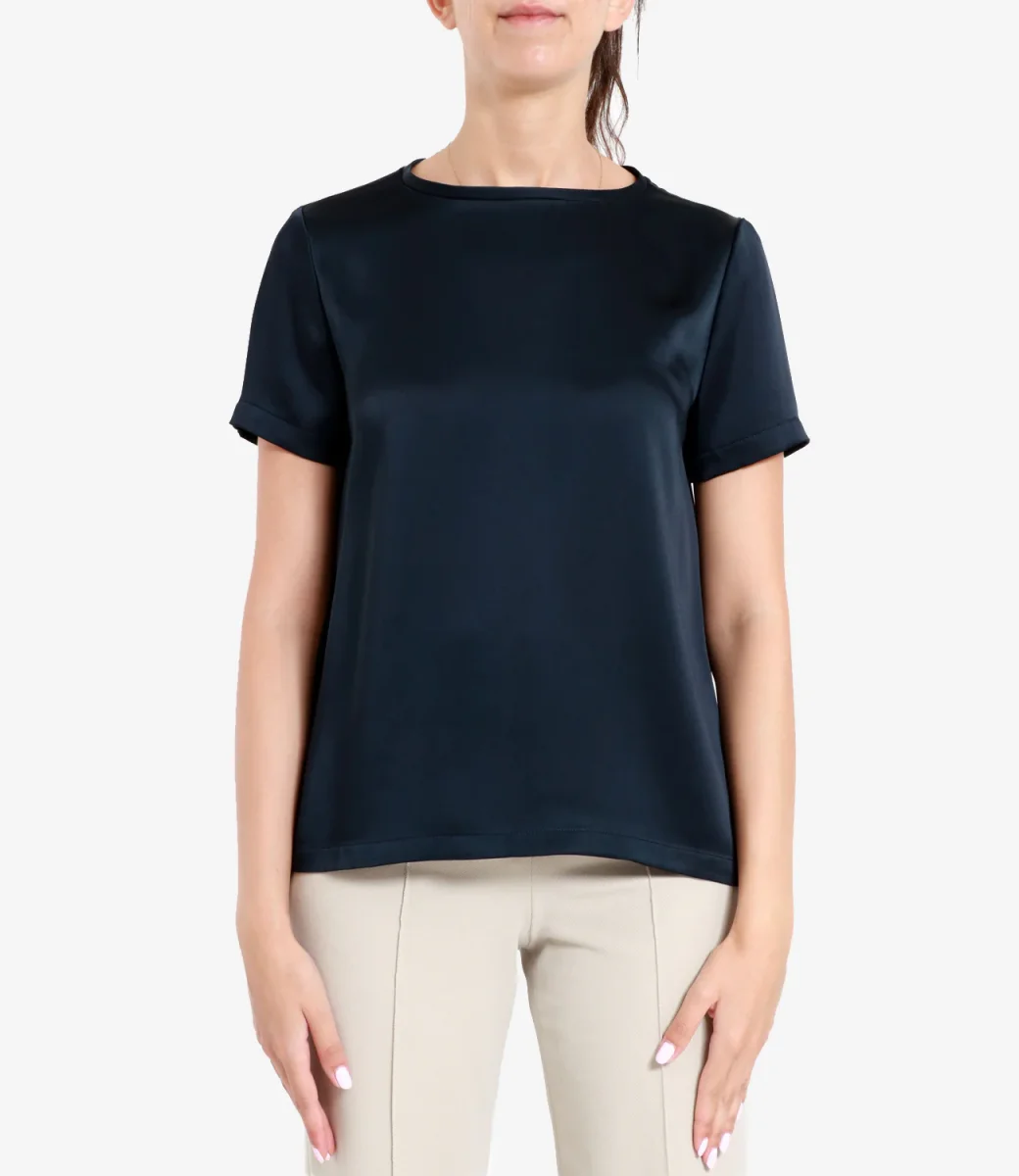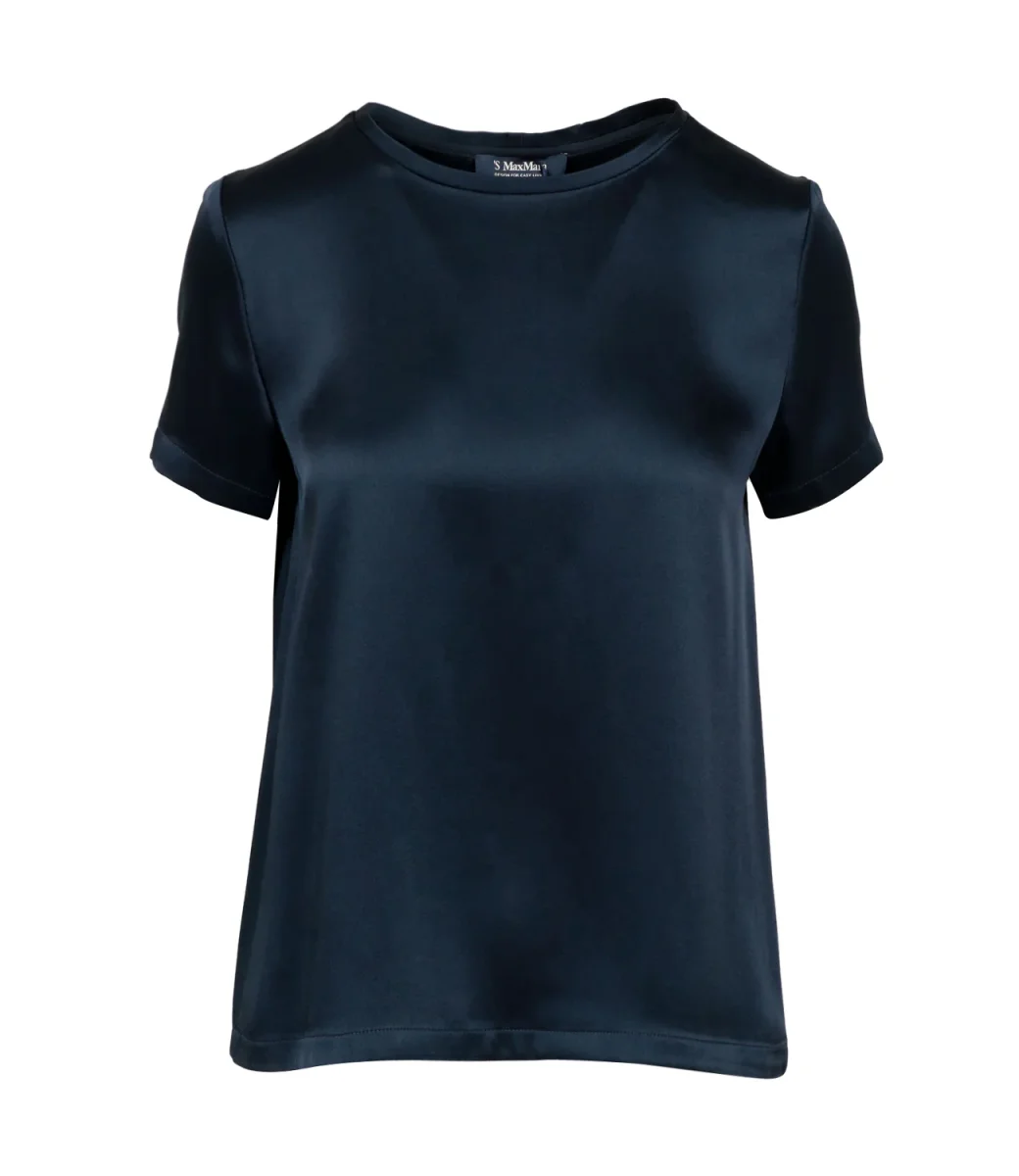 T-Shirt S Max Mara Rebecca realizzata in elegante raso di mista viscosa, girocollo ampio, maniche corte, fondo dritto