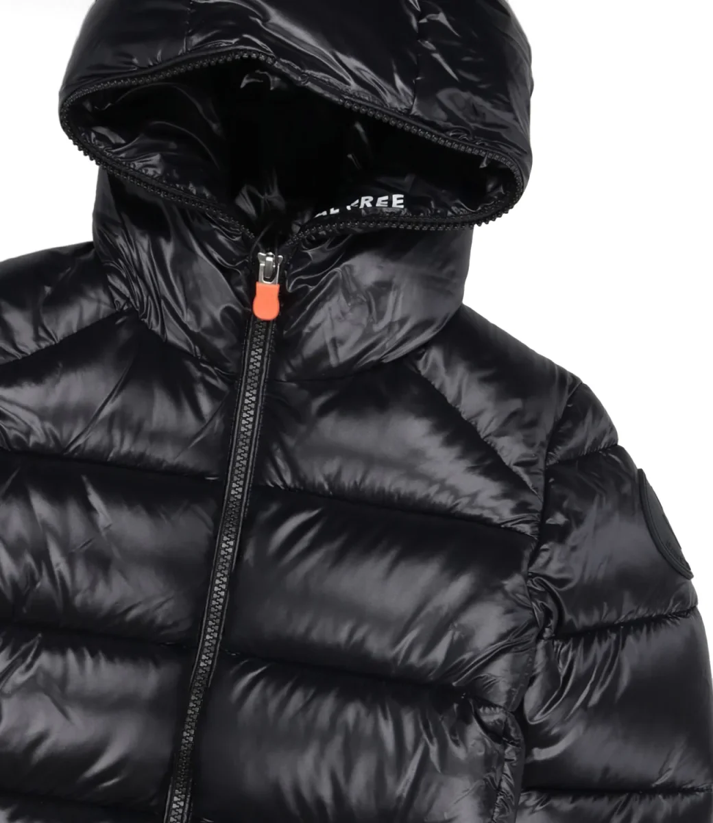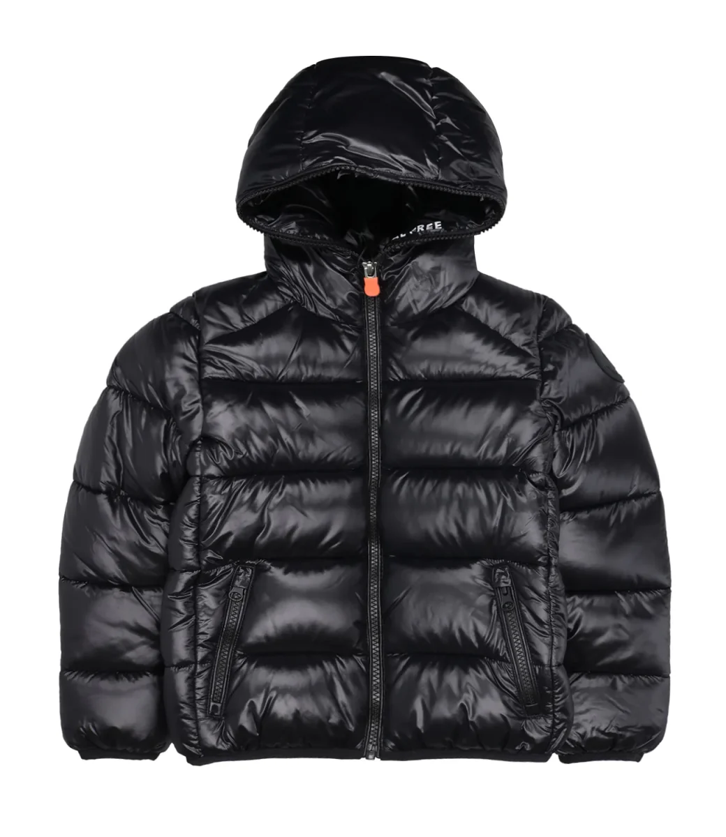 Giubbotto Save The Duck Kids Artie, in tessuto tecnico, linea trapuntata con cappuccio, tasche laterali con zip, finiture in Lycra su polsi e fondo, chiusura con zip integrale al cappuccio, tirazip color arancione, logo in gomma applicato sulla manica sinistra.