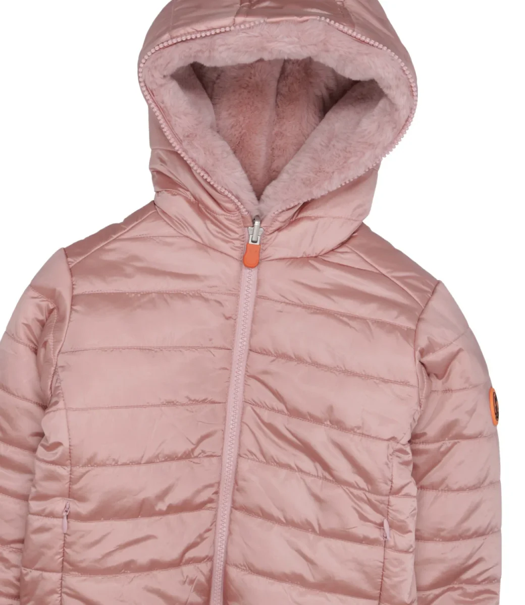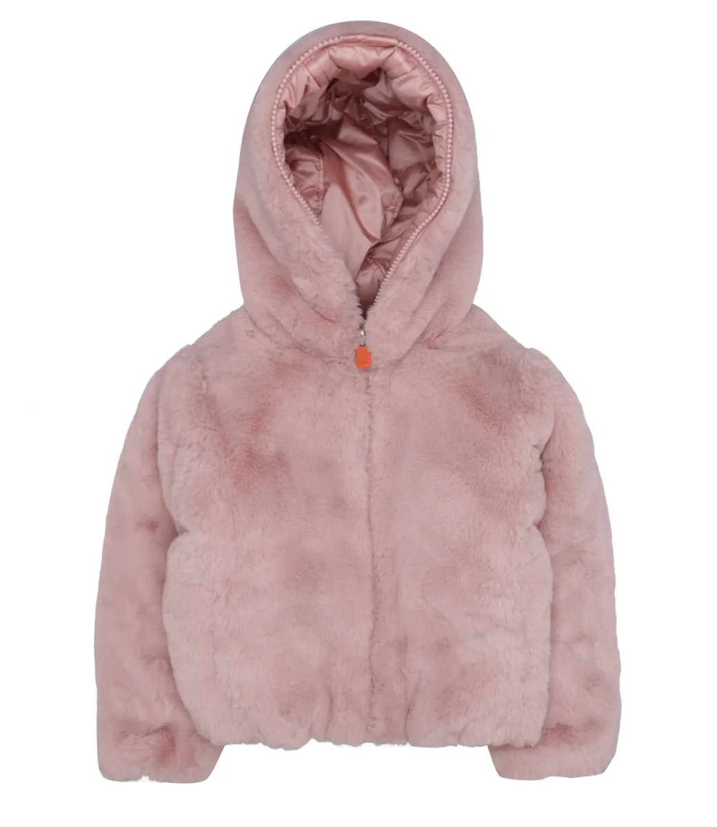 Giubbotto Save The Duck Kids Chloe reversibile: un lato in tessuto tecnico, motivo trapuntato, logo gommato applicato sul braccio sinistro; l’altro lato: in tessuto di eco-pelliccia realizzata in poliestere riciclato. Modello con cappuccio, tasche invisibili, chiusura con zip e tirazip personalizzato, rifiniture dei bordi in Lycra. Logo gommato applicato sulla manica sinistra.