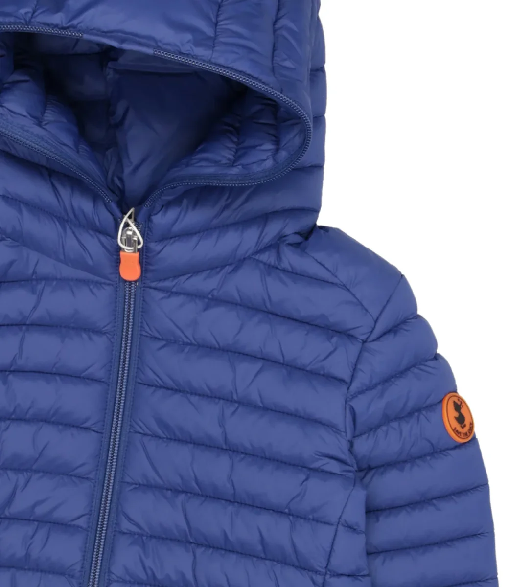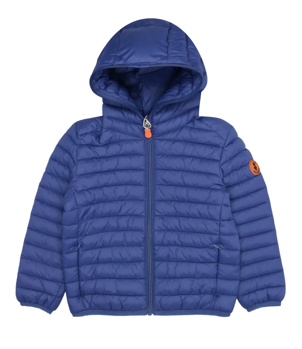 Piumino Save the Duck in nylon, trapuntatura orizzontale, cappuccio, chiusura frontale con zip, tirazip con logo gommato, maniche lunghe, orlo e polsini elasticizzati.