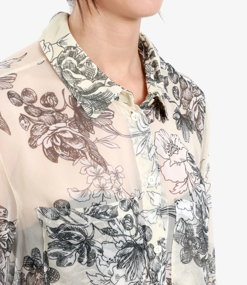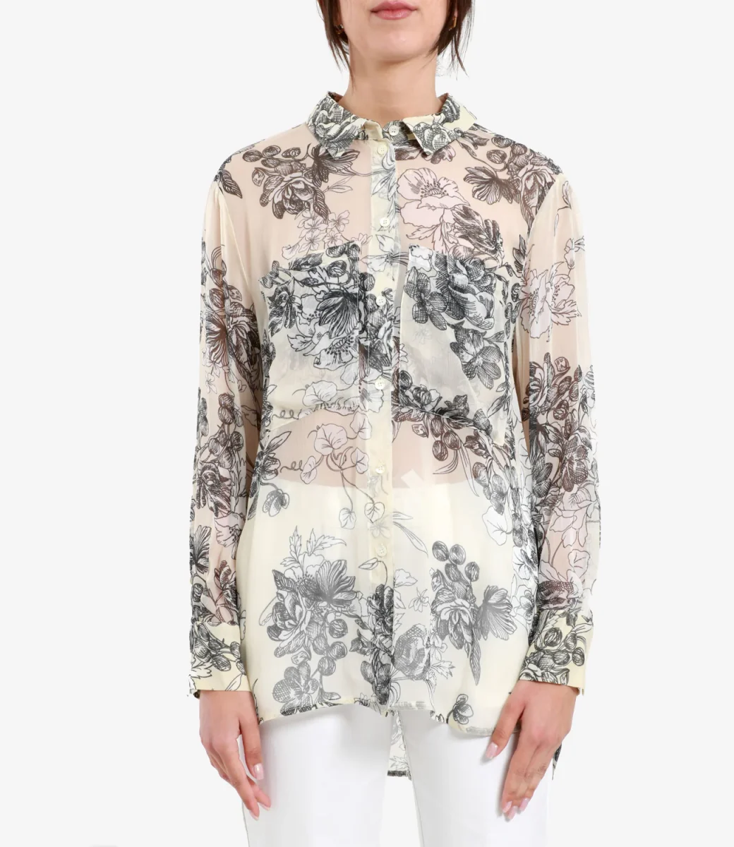 Dettagli:– Viscosa– Colletto– Maniche lunghe – Stampa fiorata all over– Button down