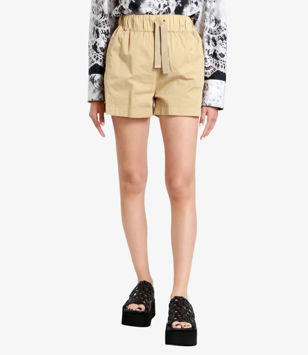 Shorts Semicouture Nola in gabardina di cotone, vita elasticizzata con coulisse con nastro gros grain in tono. Tasche laterali a filo, vestibilità regular.