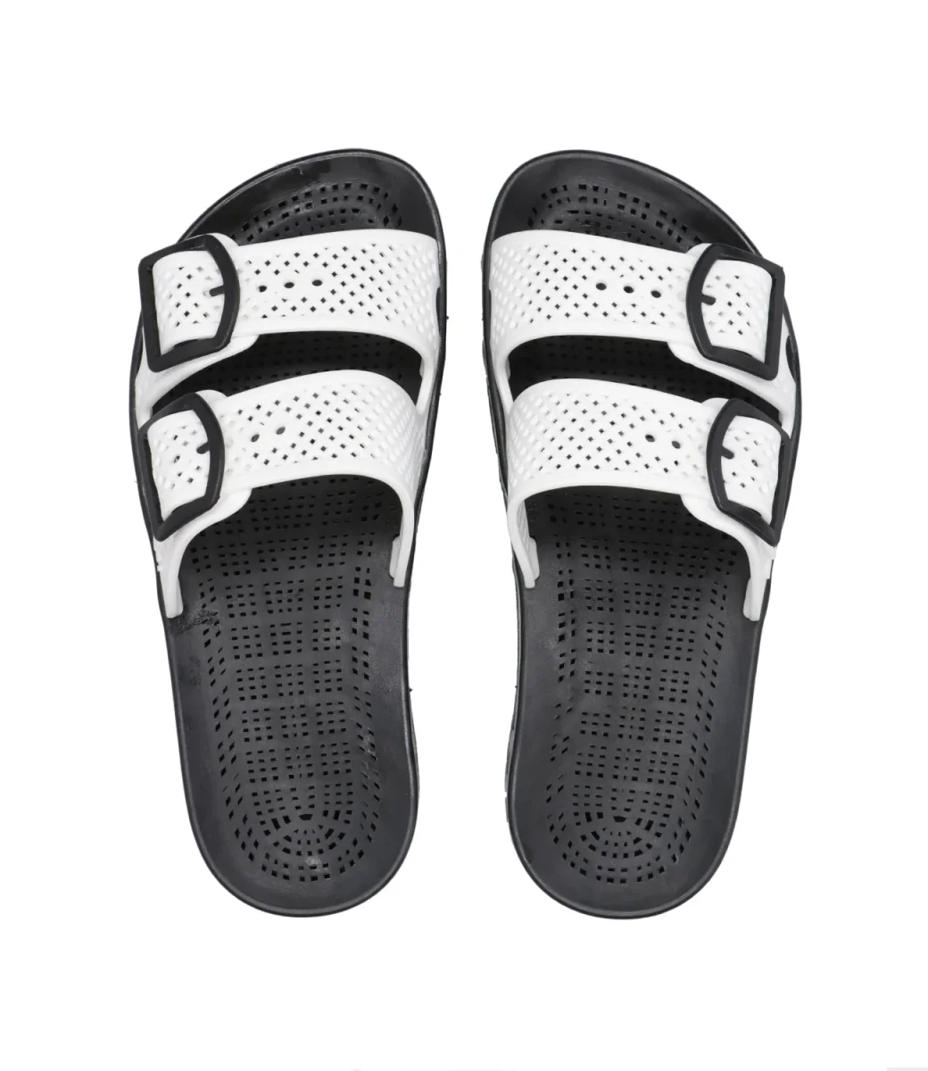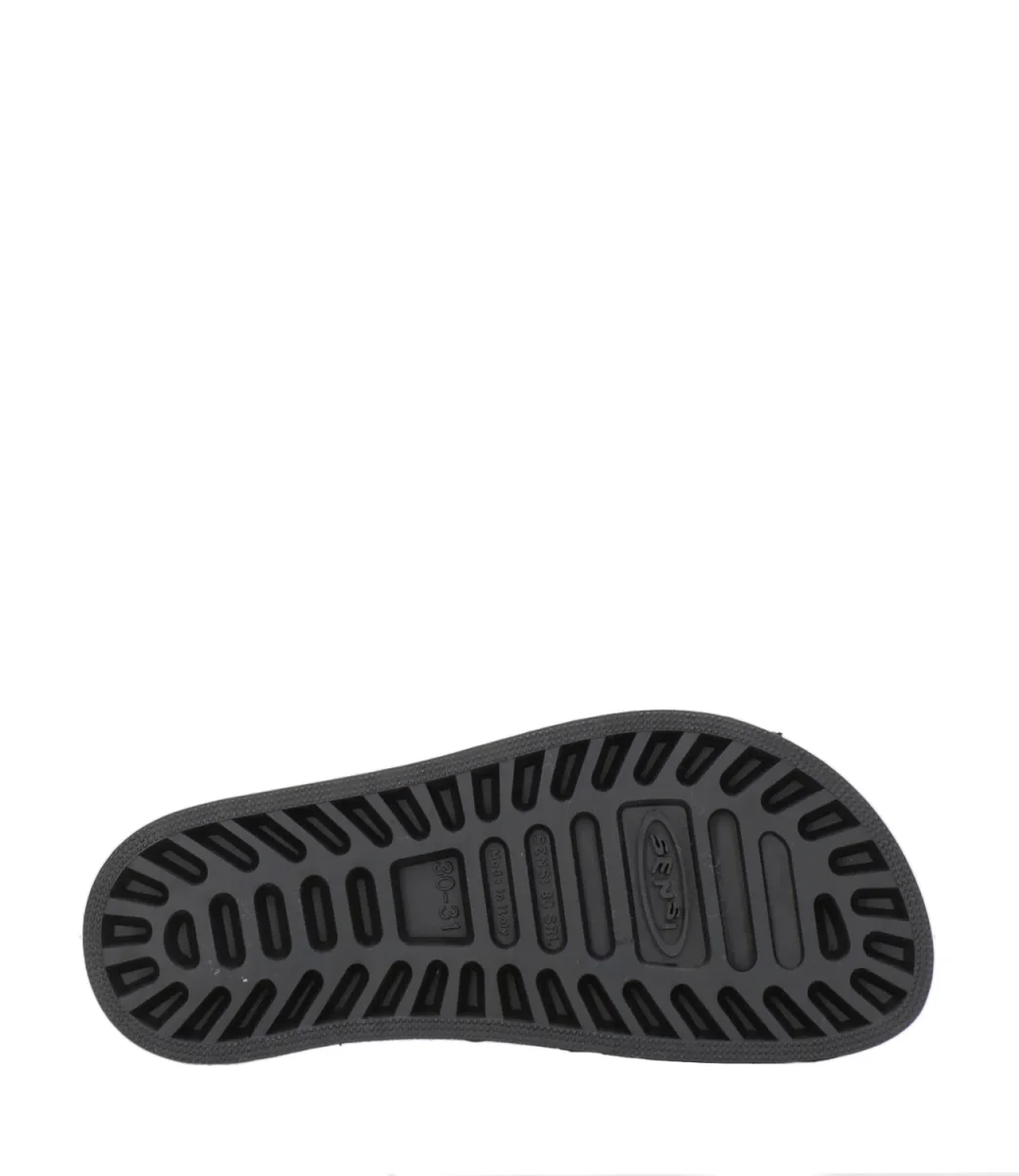 Ciabatta Sensi Kids La Jolla Urban modello a doppia fascia regolabile. Linea nata per il benessere del piede con sistema SENSI ®, speciale suola in PVC ottenuta dall’accoppiamento meccanico di un sottopiede traforato, creando una ventilazione che mantiene costantemente la pelle asciutta. Realizzata al 100% in gomma riciclabile.