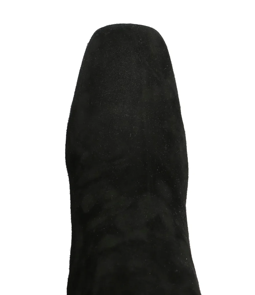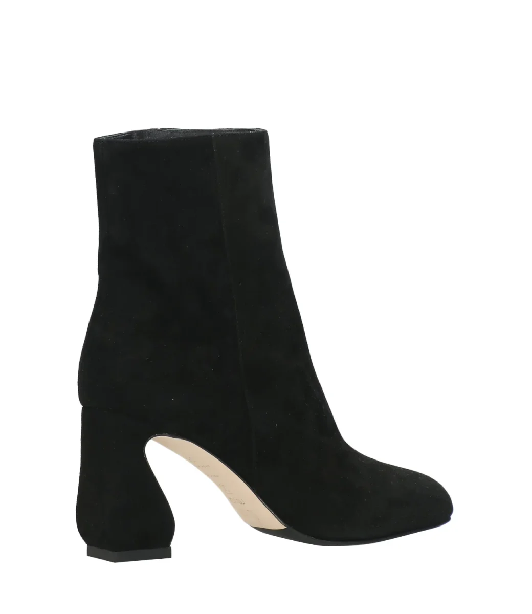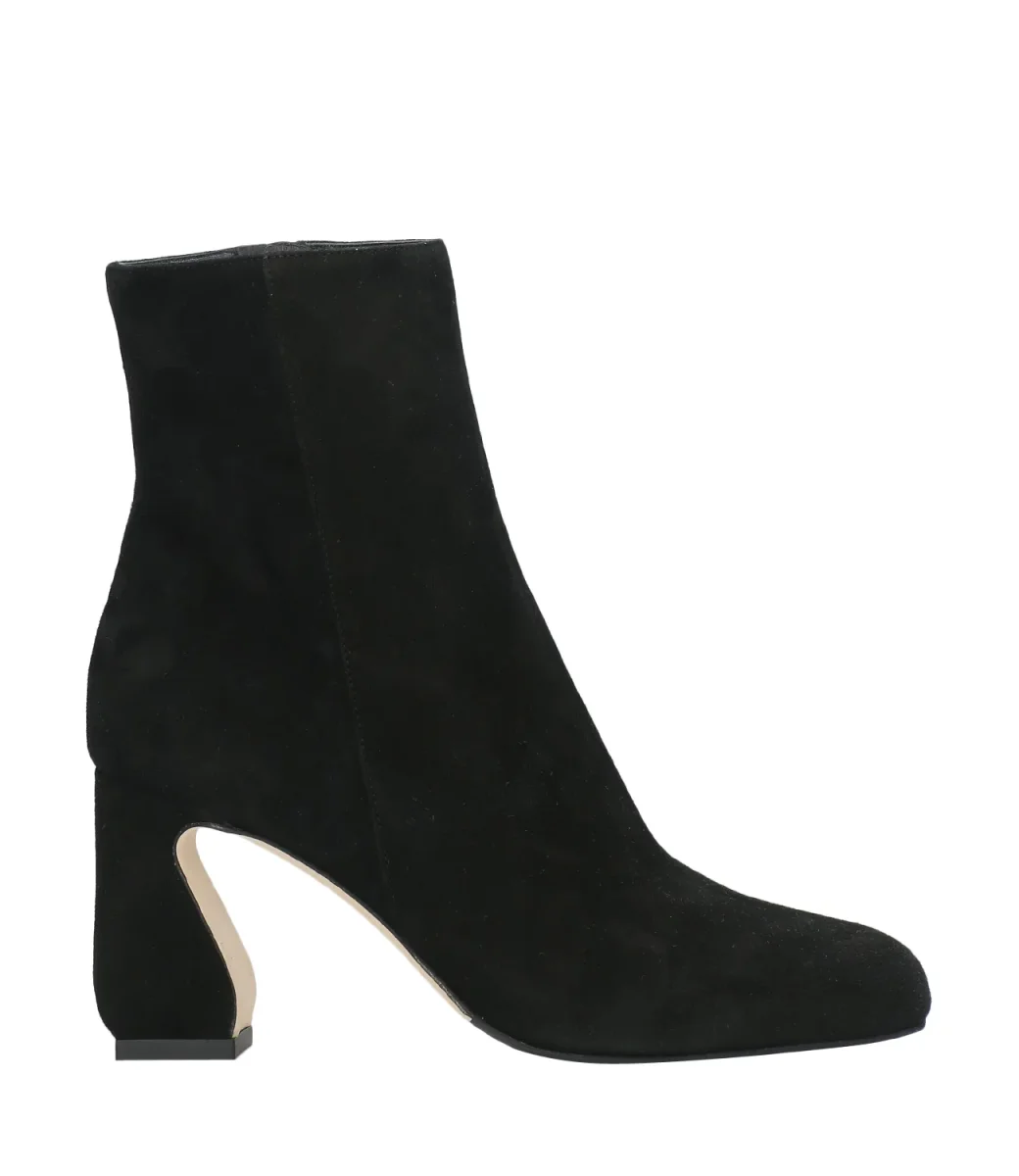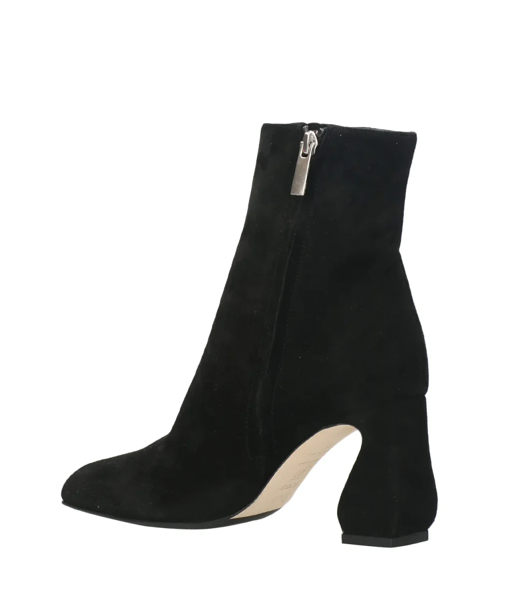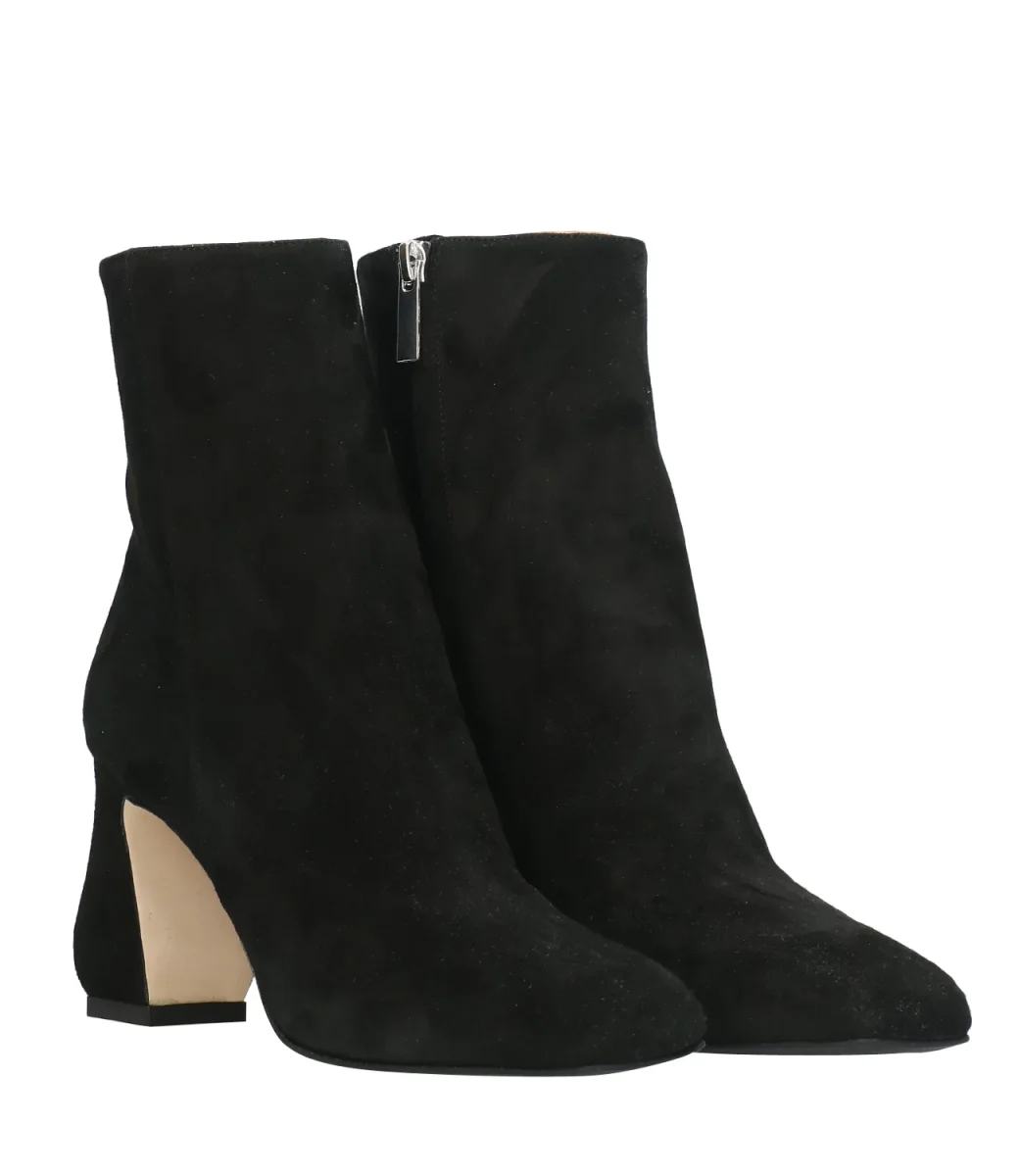 Tronchetto dalla punta quadrata con chiusura laterale con zip e tacco largo alto.