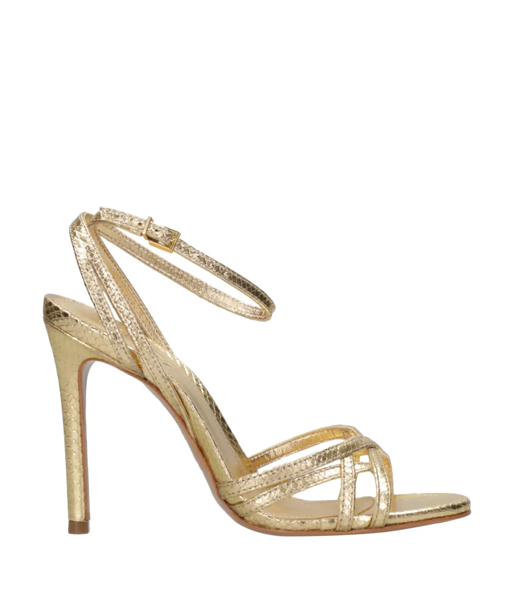 Sandalo Shutz in pelle con fascia frontale incrociata, cinturino alla caviglia con fibbia regolabile e tacco 10cm.