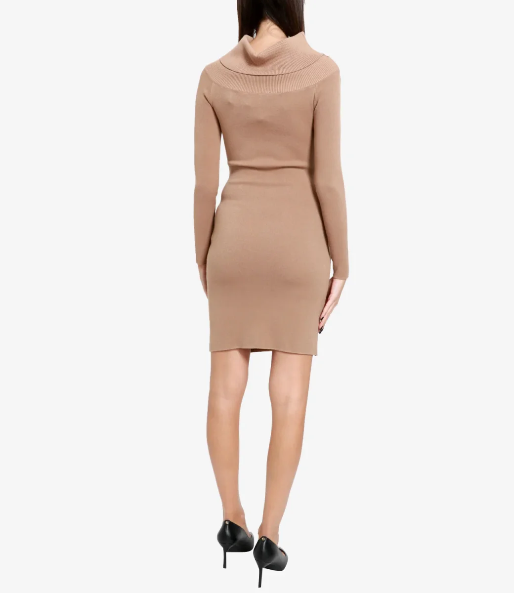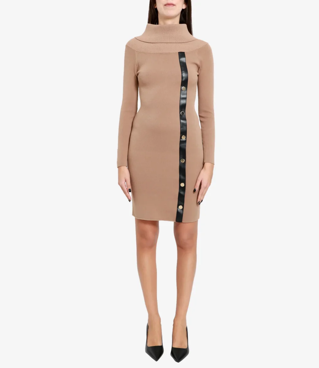 Abito Simona Corsellini in viscosa con collo alto, maniche lunghe e motivo frontale.