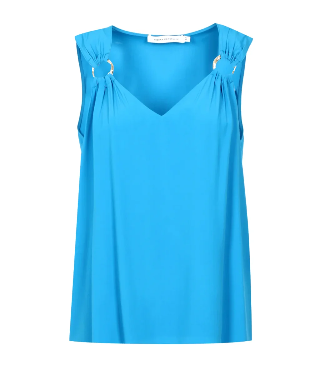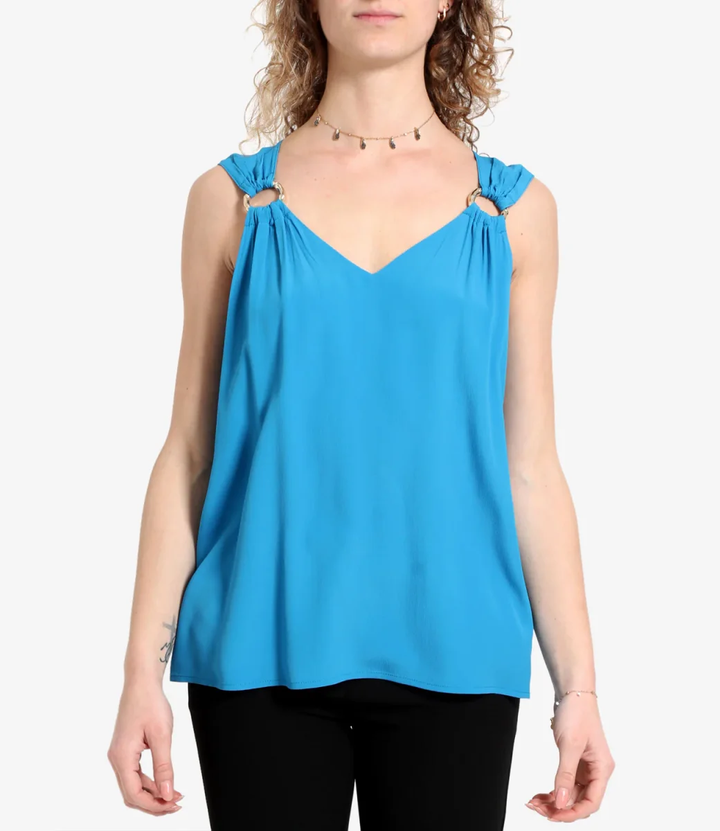 Top Simona Corsellini in misto seta senza maniche con scollo a V e dettaglio anello in argento.