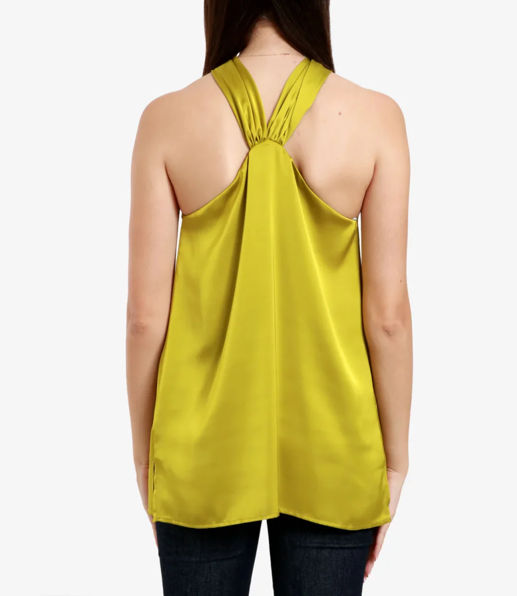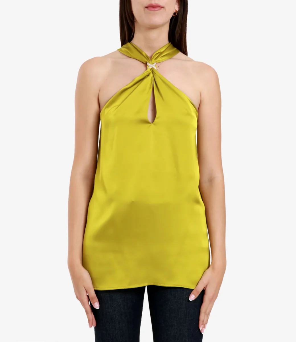 Dettagli:– Tessuto fluido– Nodo sul petto– Smanicato– Tinta unita– La modella è alta 1.70m ed indossa una 40