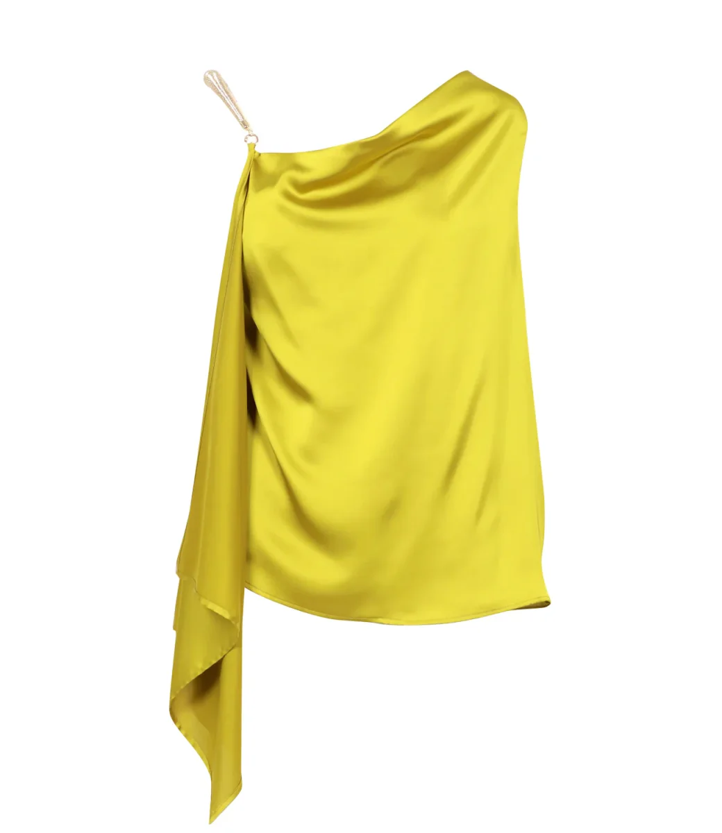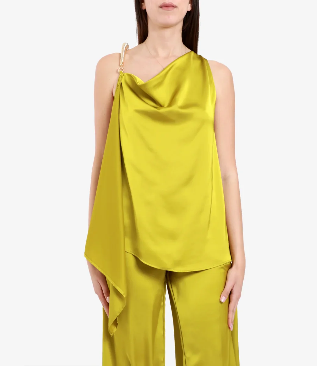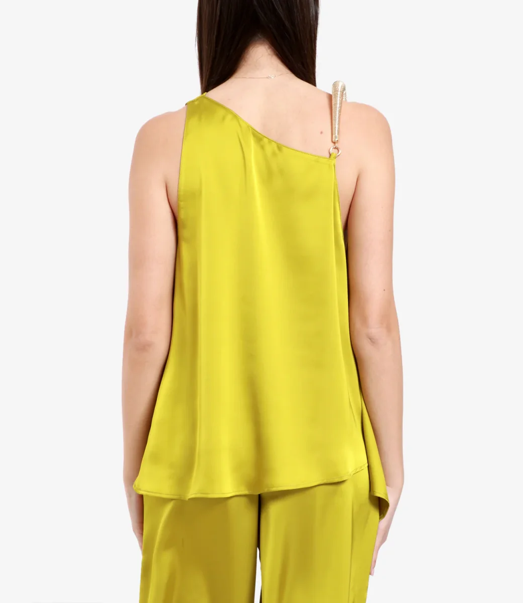 Top Simona Corsellini in misto seta senza maniche con scollo a V e dettaglio anello in argento.