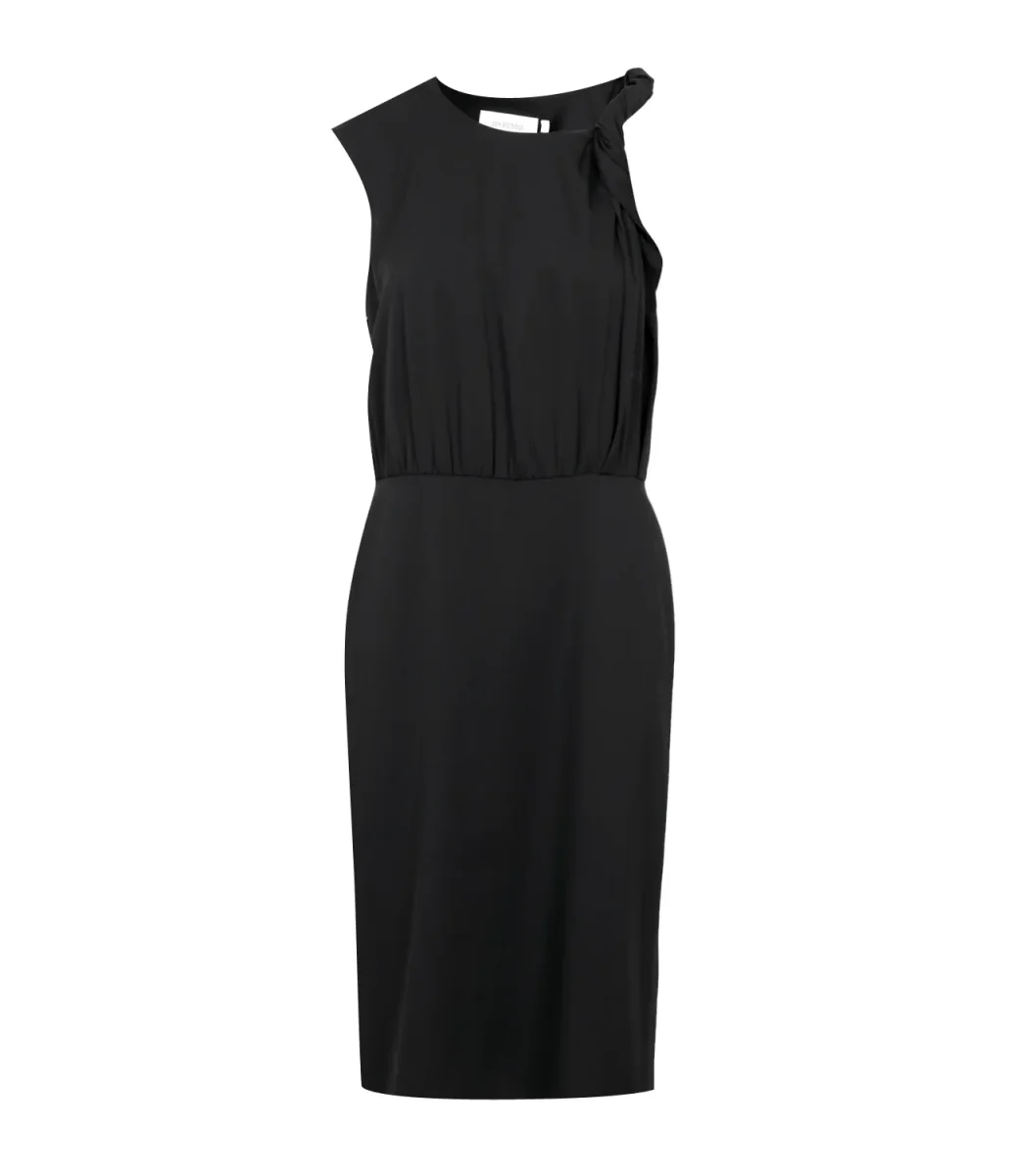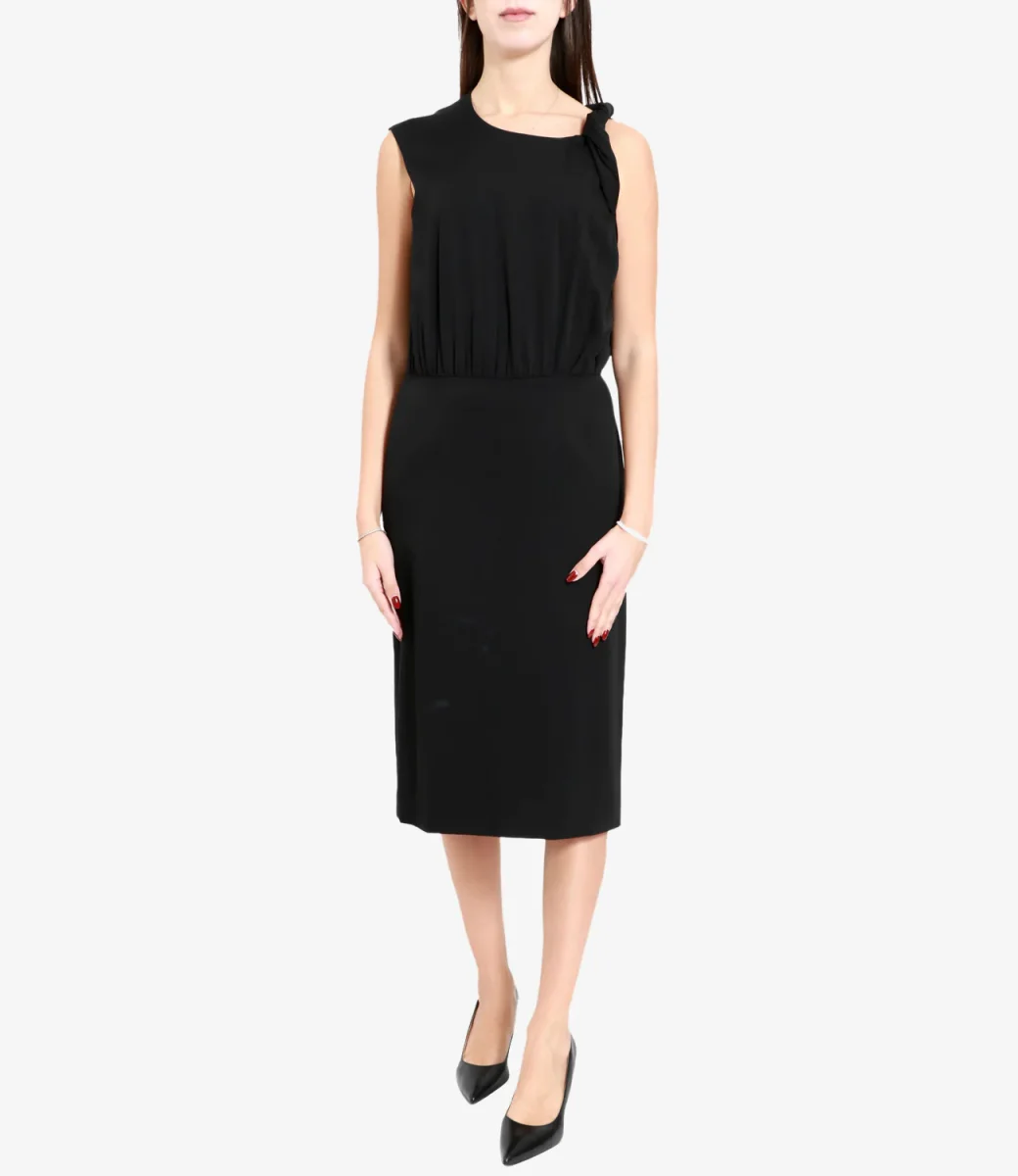 Abito Sportmax in seta modello Cris smanicato. La modella è alta 1.75m ed indossa una 40.