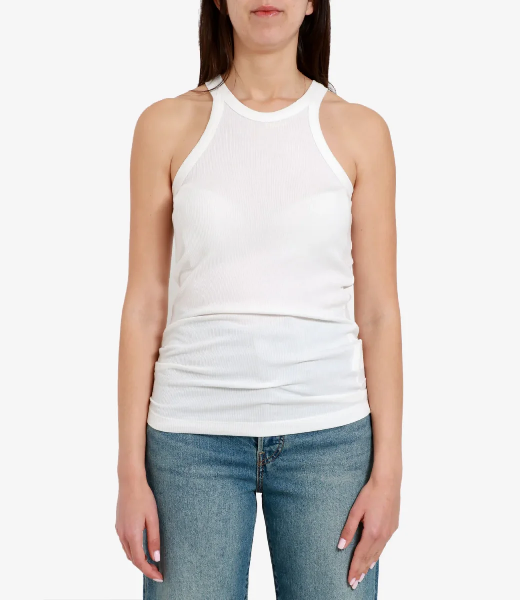 Canotta Sportmax Nastie realizzata in filato di misto seta con lavorazione a costine. Scollo all’americana sulle spalle. Vestibilità regolare.