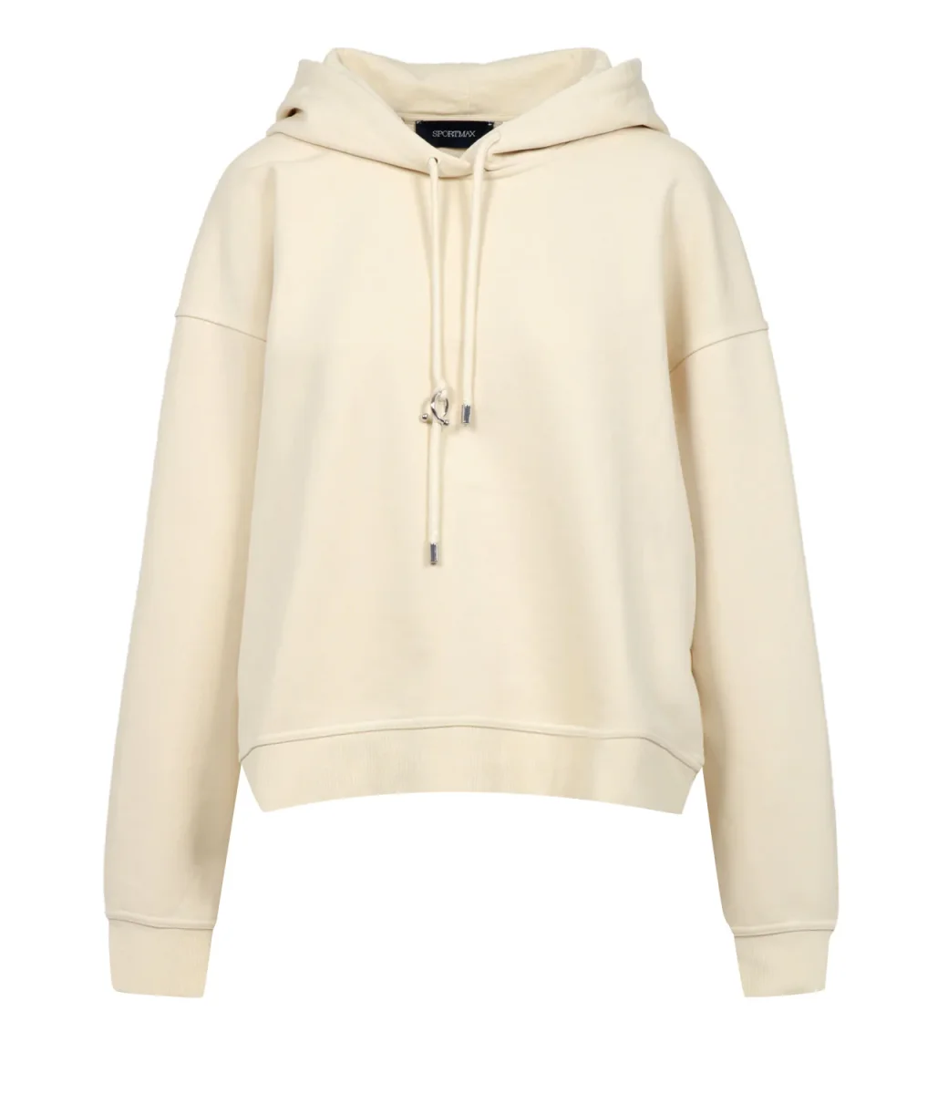Felpa Sportmax Urna varsity in jersey felpato di misto cotone stretch. Cappuccio con coulisse con finalini metallici personalizzati e S intrecciata al laccio. Polsi e fondo a costine, logo nel polsino.