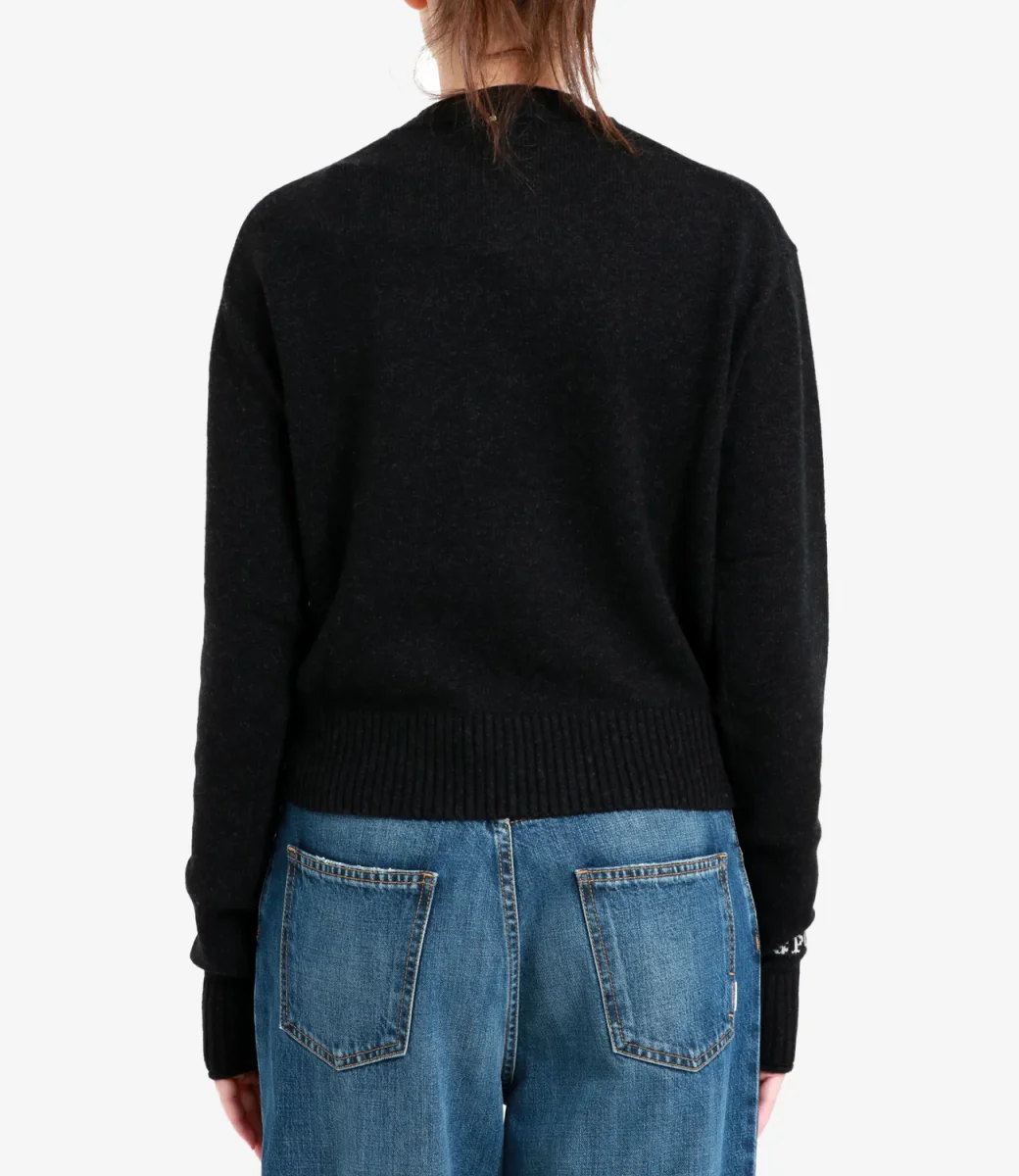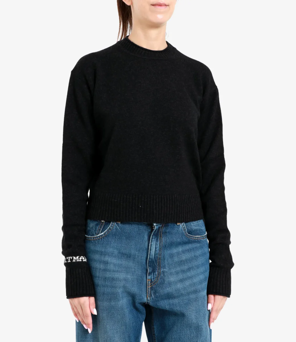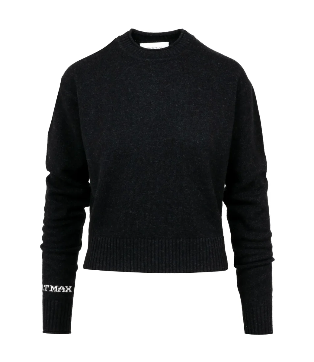 Maglia Sportmax Agadir1234 in pura lana, girocollo a coste, maniche lunghe con con polsini a coste, fit morbido, spalla alla francese caratterizzata da calature evidenti. Le coste in vita creano un leggero sbuffo, più evidente al polso, lunghezza in vita bordata con fondo a costine.