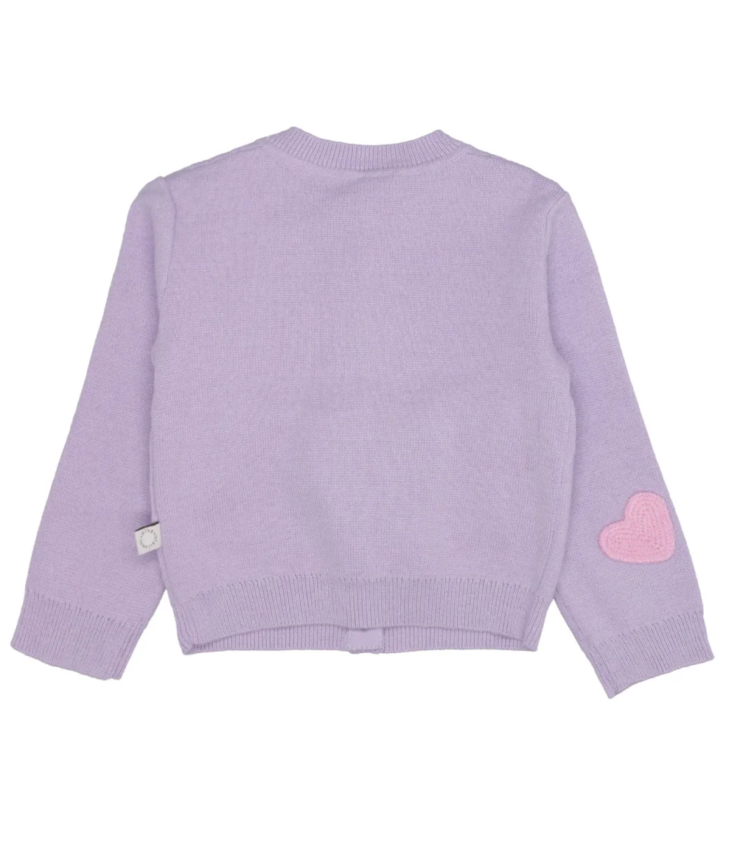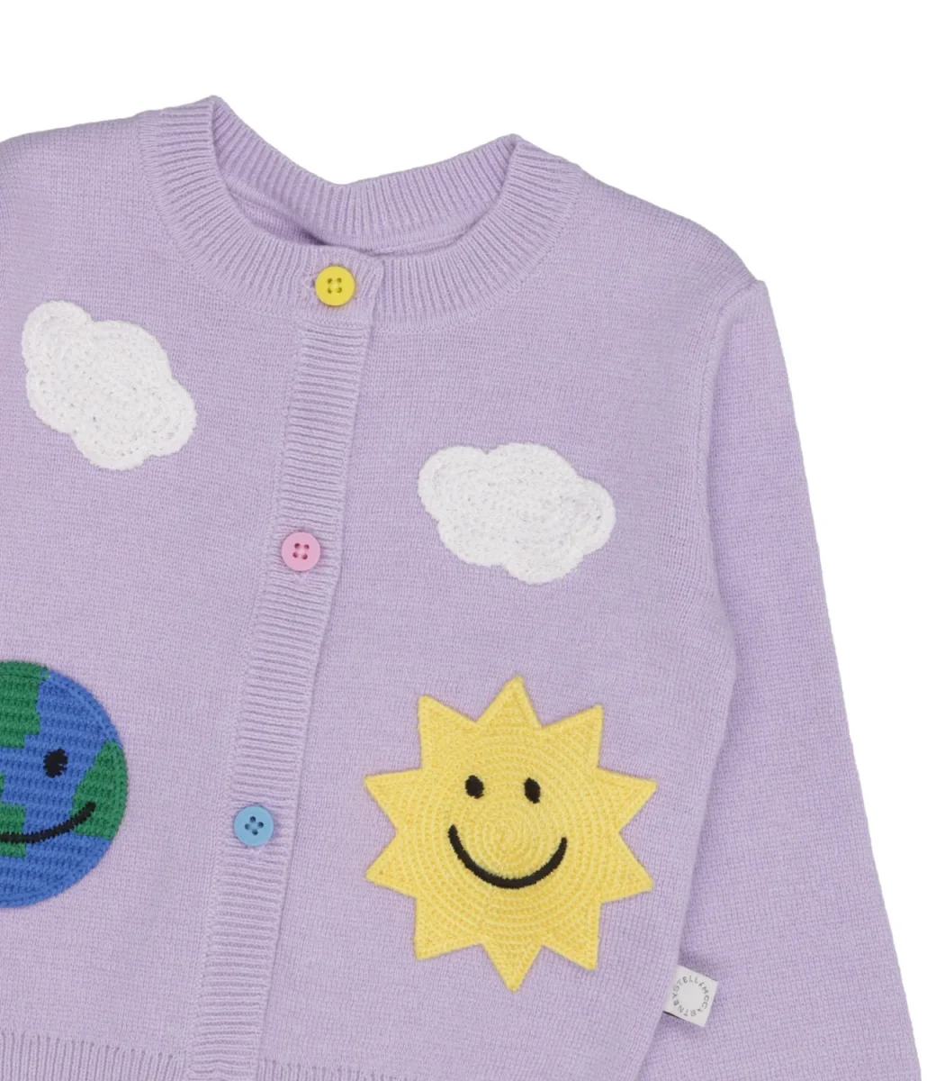 Cardigan Stella McCartney Kids realizzato in misto cotone organico e lana certificata RWS. Collezione ispirata a Madre Terra ed elementi sorridenti anche grazie all’utilizzo di materiali sostenibili.
