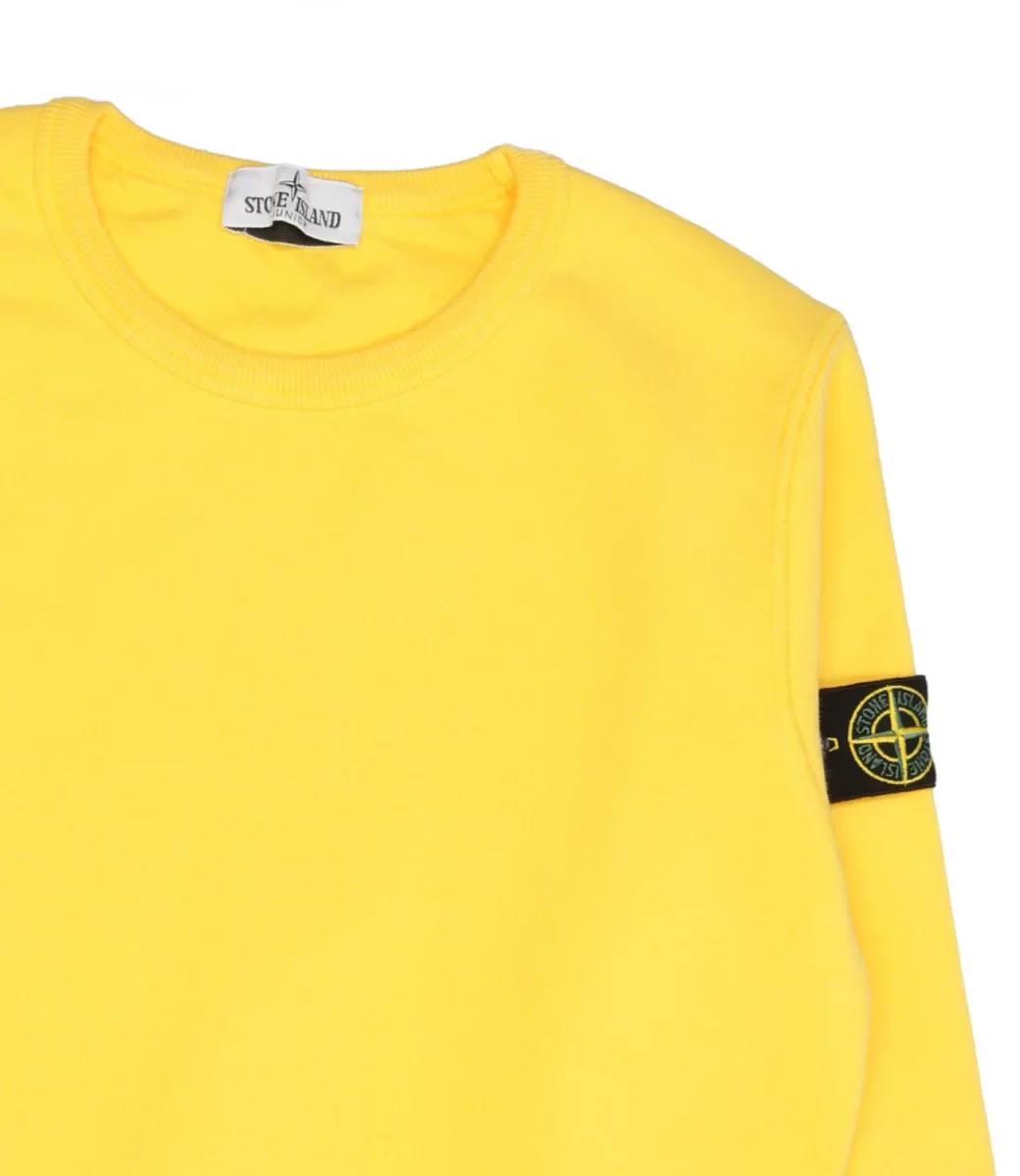 Felpa Stone Island Junior in cotone, girocollo, maniche lunghe con polsini a coste, Badge Stone Island sulla manica sinistra, sul fondo bordo a costine, vestibilità regolare