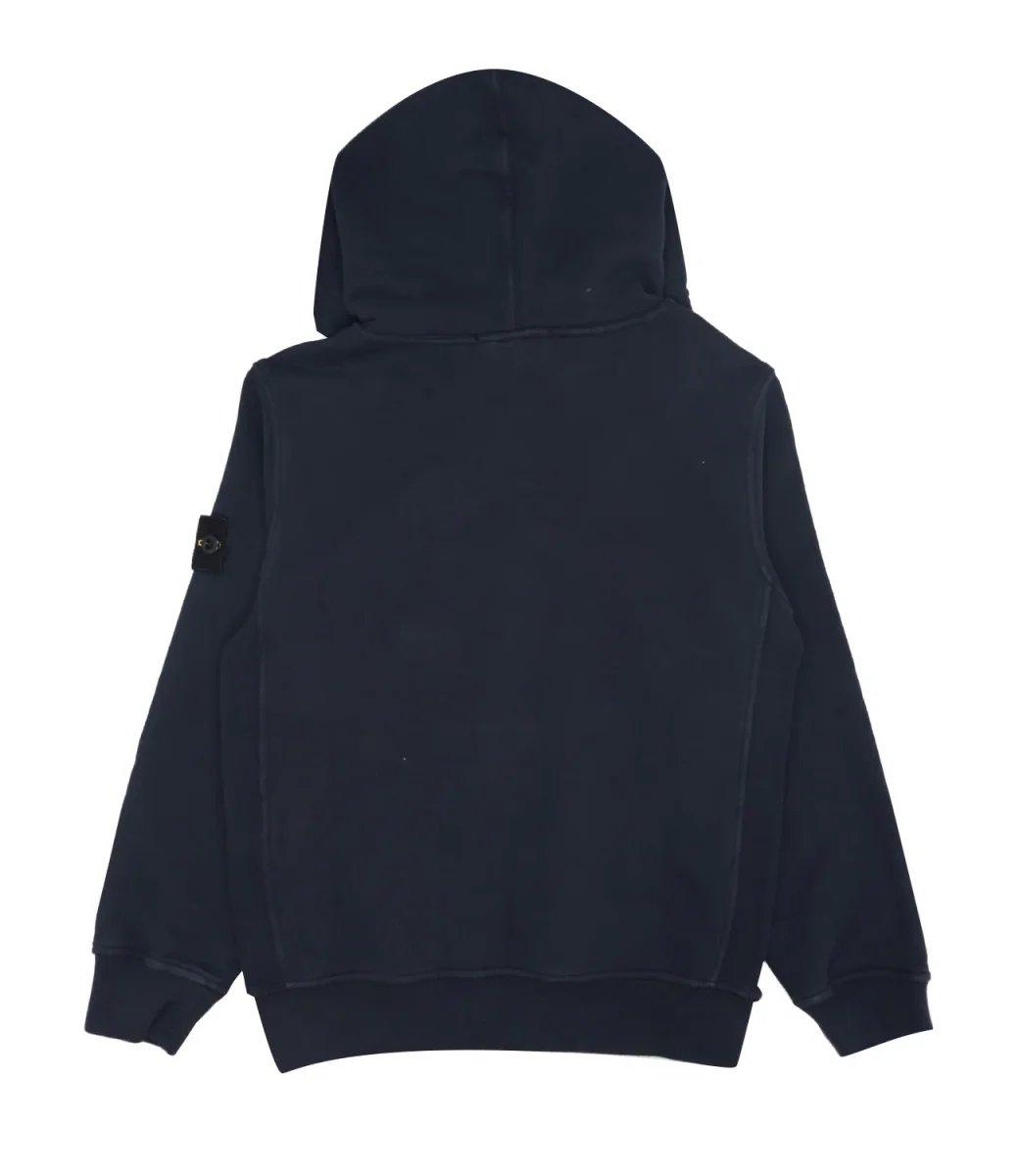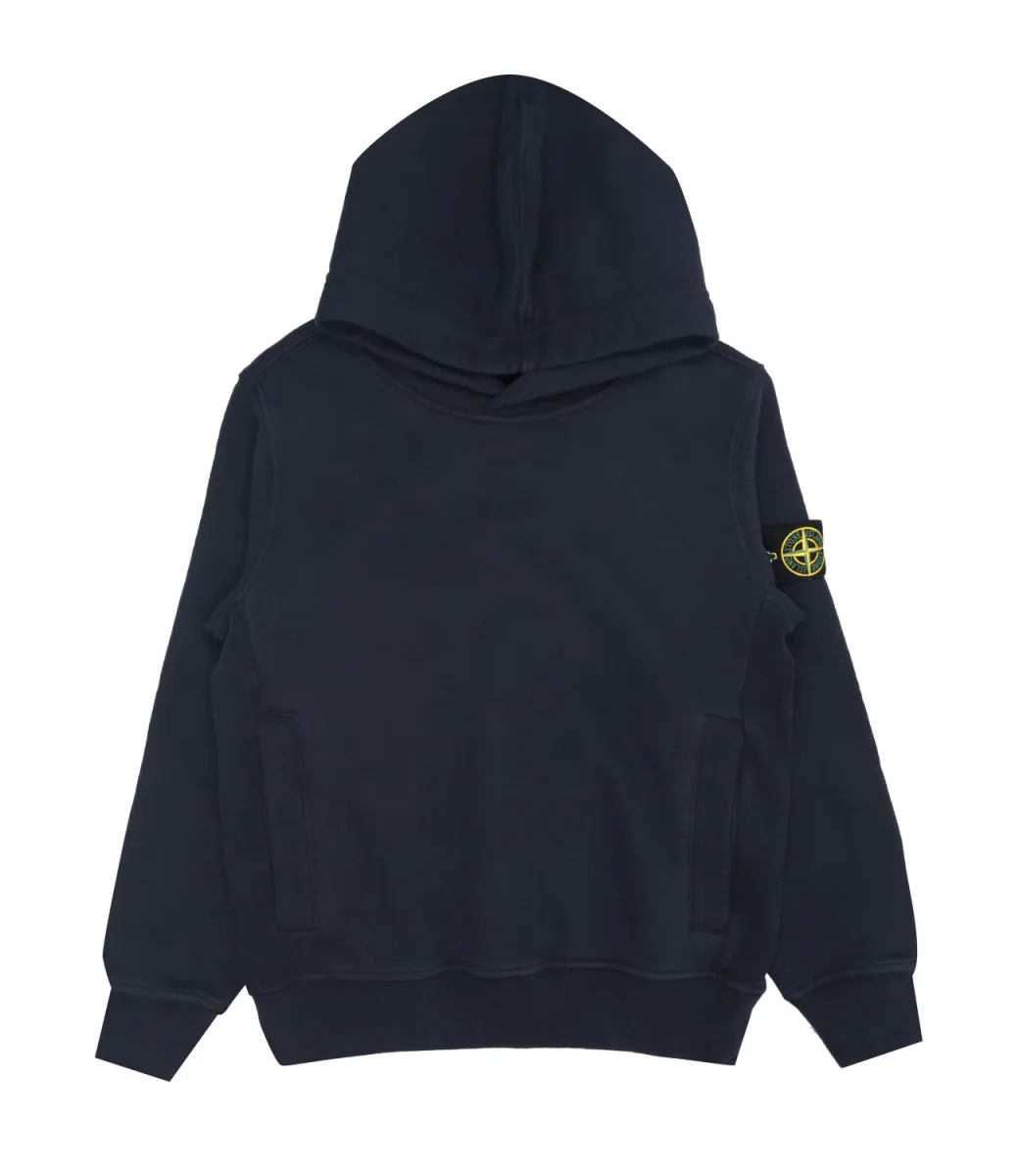 Felpa Stone Island Junior in cotone biologico garzato, cappuccio, maniche con polsini e fondo con bordo a costine, logo sulla spalla sinistra.