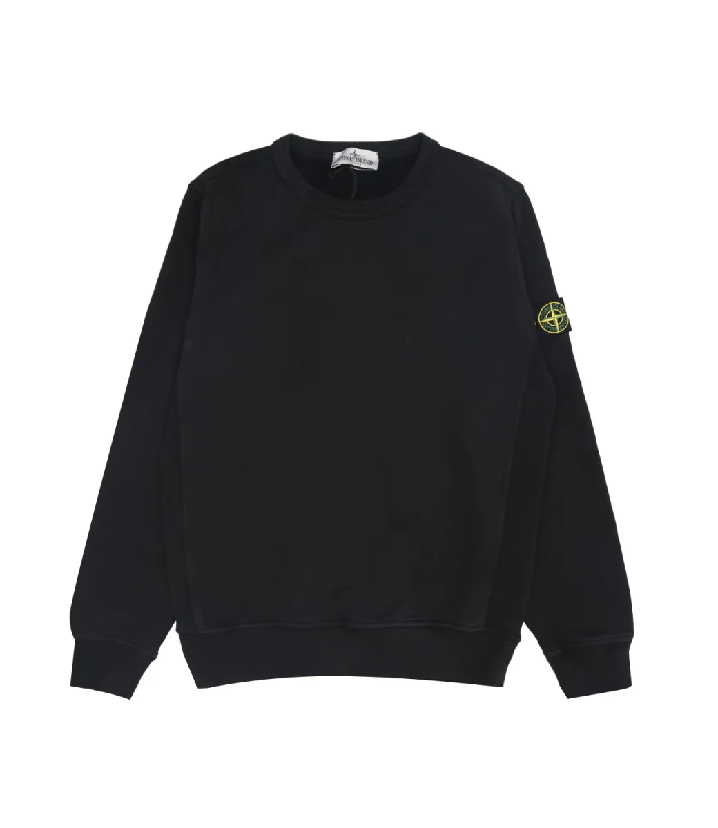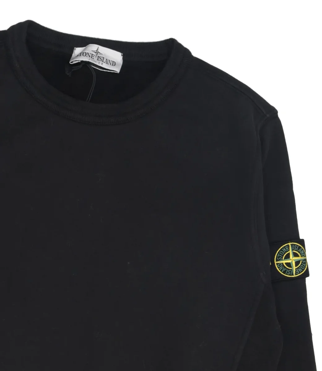 Felpa Stone Island Junior in cotone biologico garzato, girocollo, maniche con polsini e fondo con bordo a costine, logo sulla spalla sinistra.